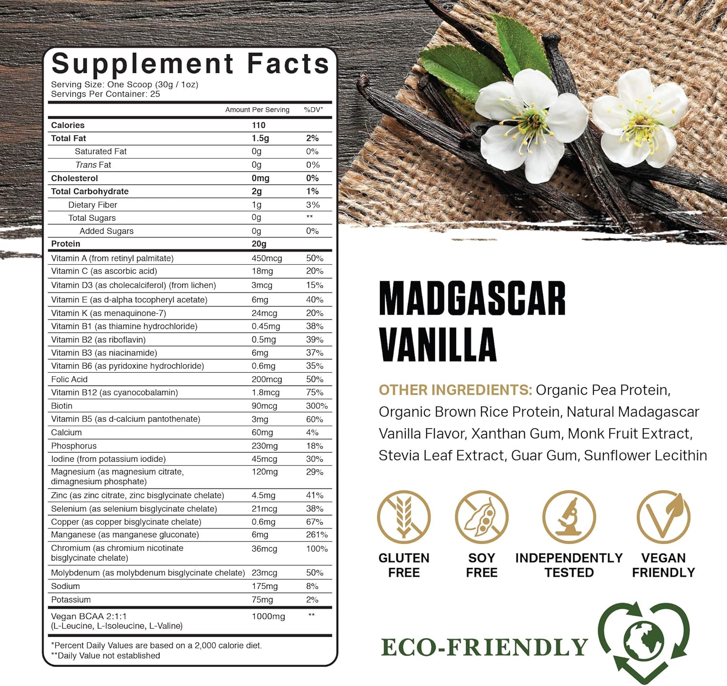 Ambrosia Planta – Plant-Based Protein Powder 20g | Dairy Free Vegan Protein Powder with BCAA Amino Acids | Keto-Friendly, No Added Sugar | 25 Servings | Vanilla