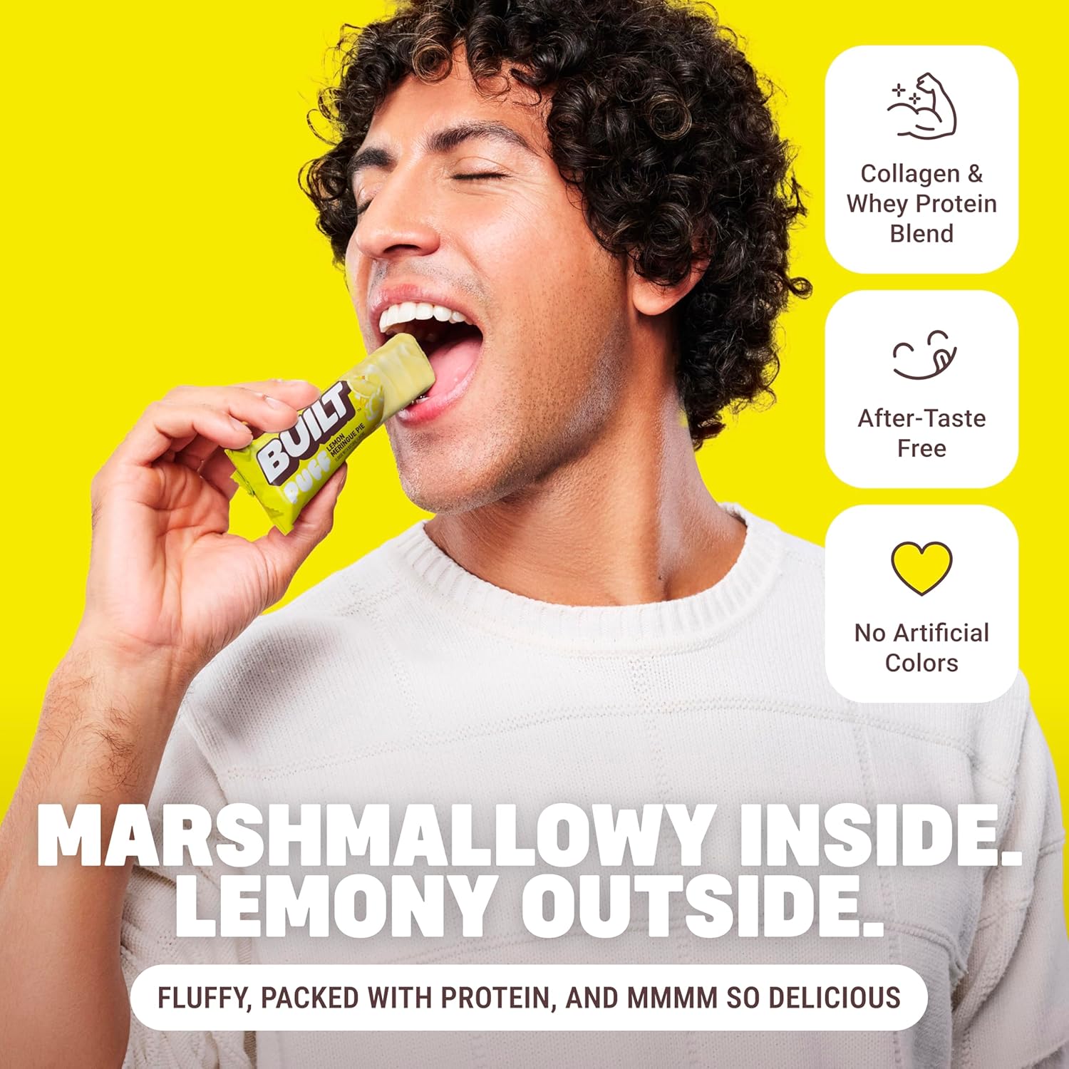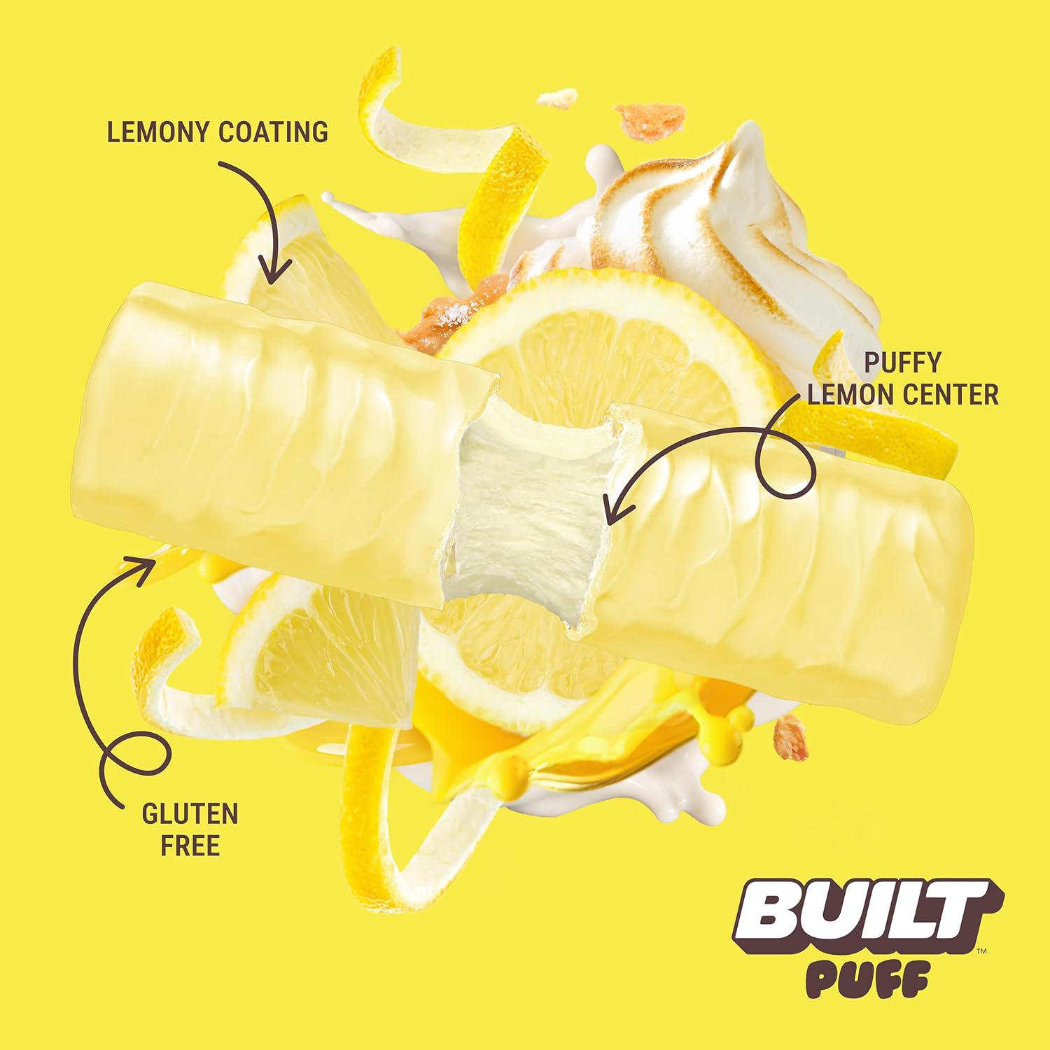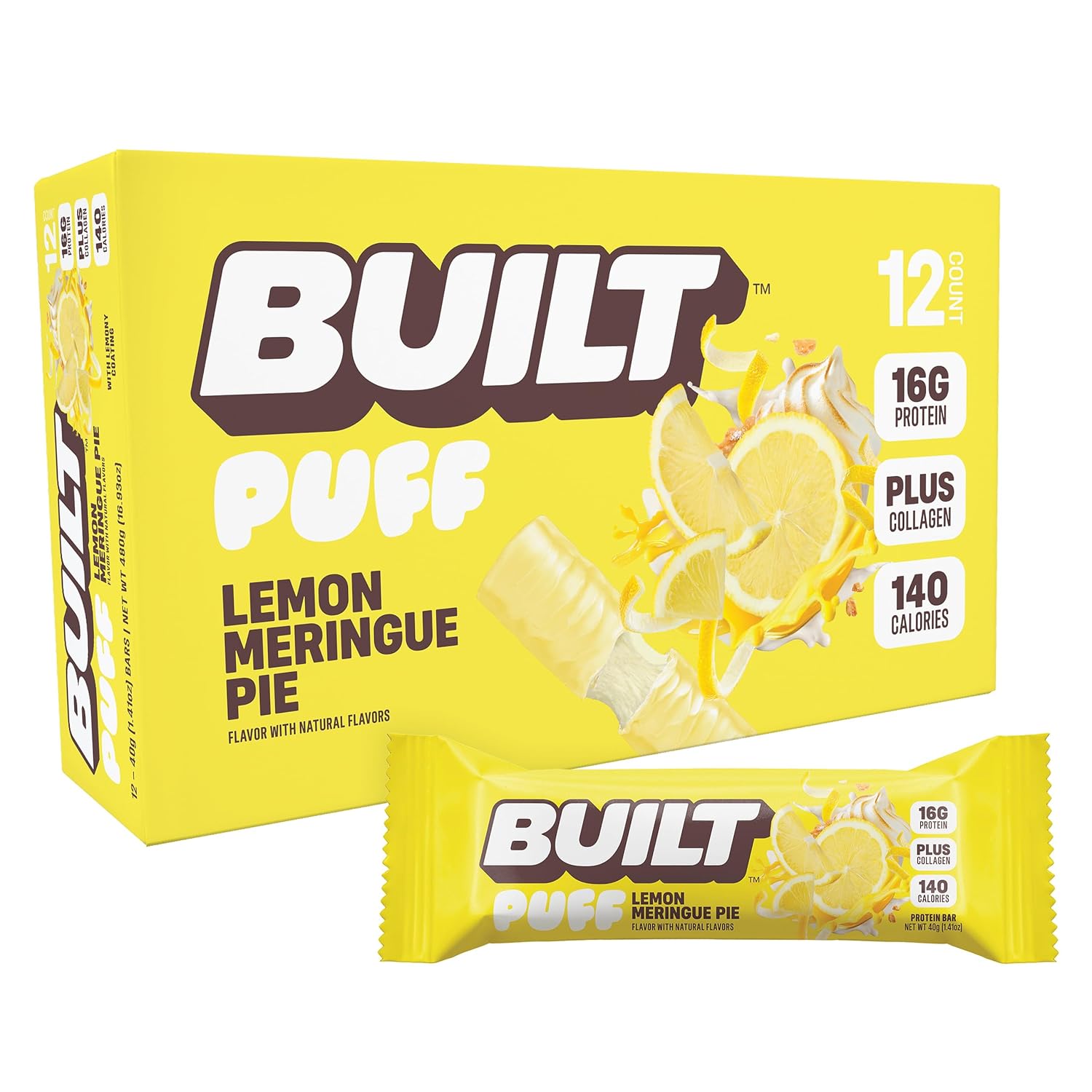 BUILT Bar Puff Protein Bars – Lemon Meringue Pie – 16g Protein Snack Bars with Collagen – Calorie Conscious & Gluten Free – 12 Count