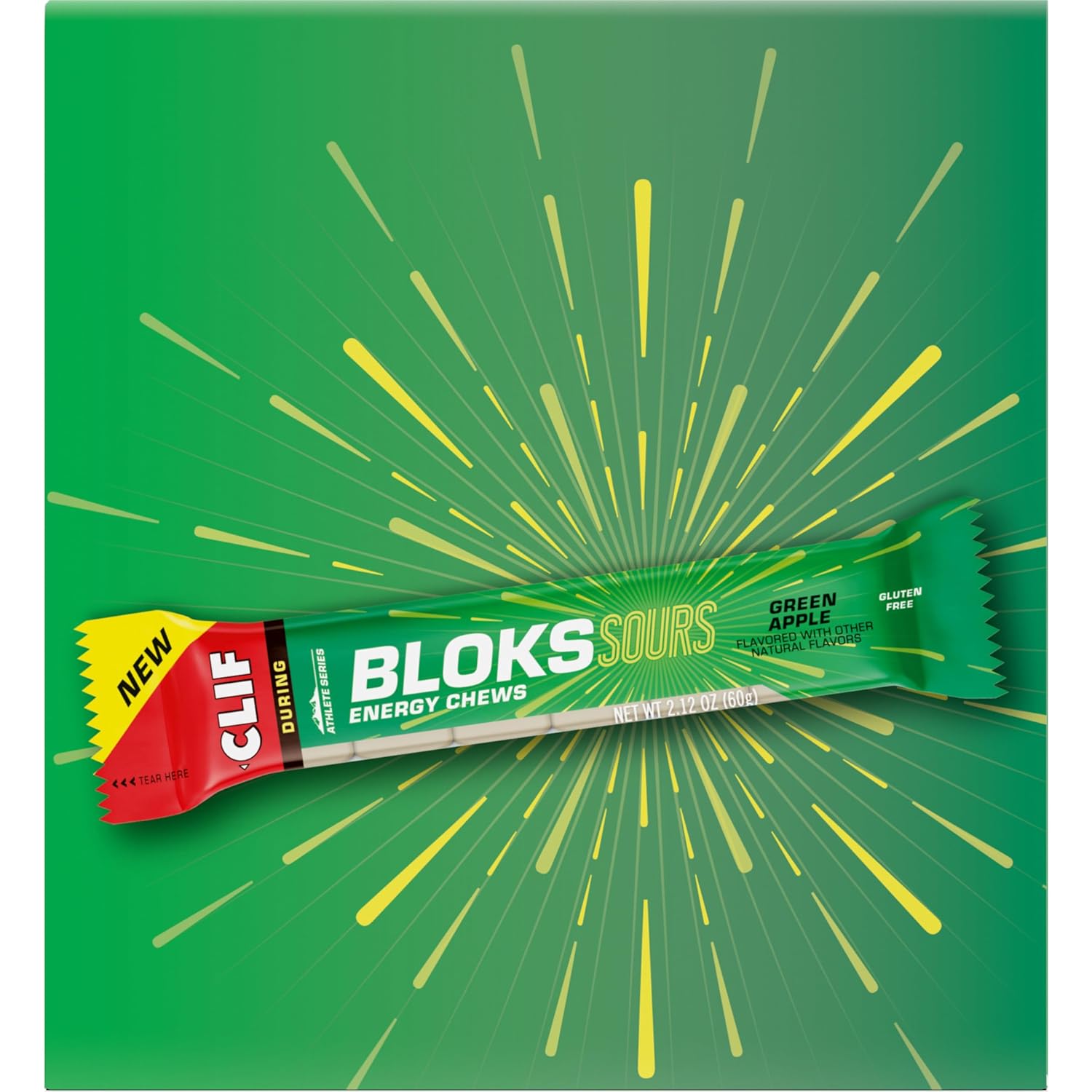 Clif Bloks Sours – Green Apple Flavor – Energy Chews – Non-GMO – Plant Based – Fast Fuel for Cycling and Running – Quick Carbohydrates and Electrolytes – 2.12 oz. (18 Count)