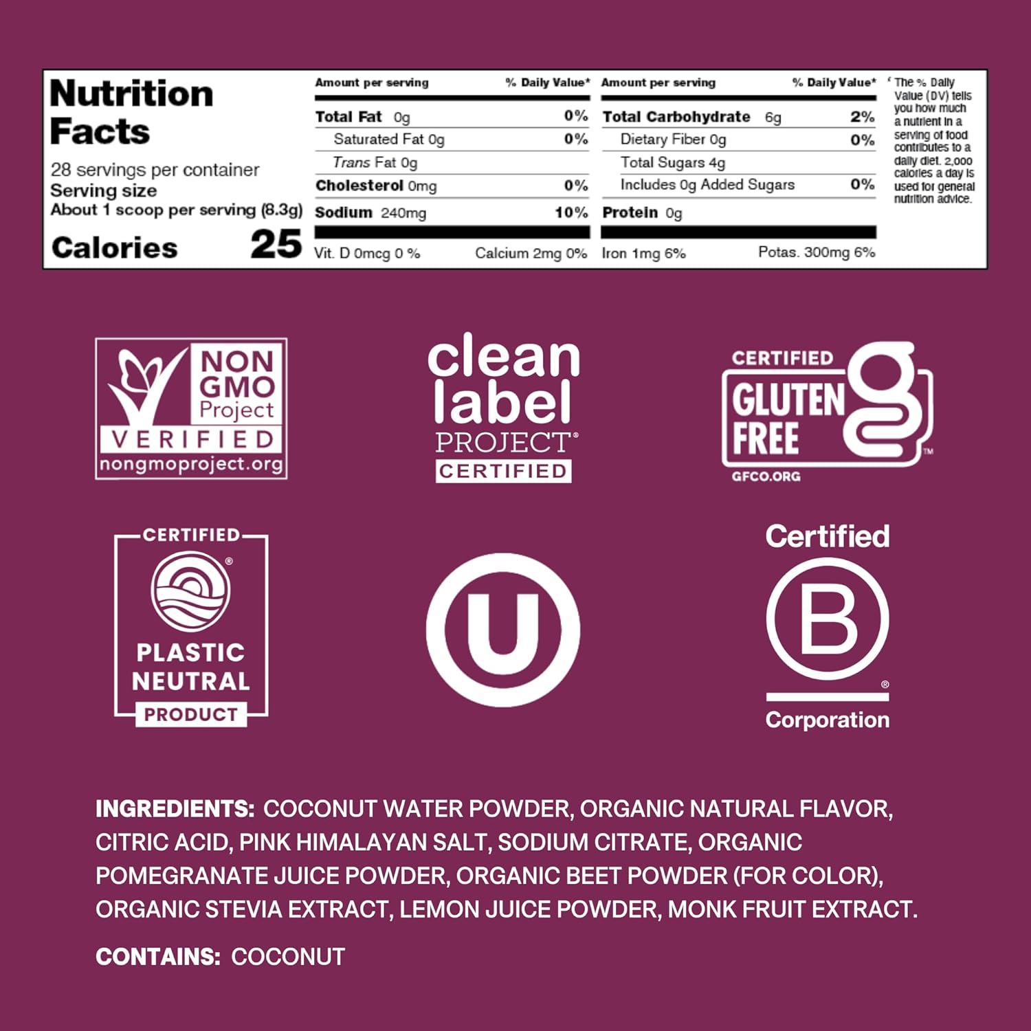 Cure Hydration | Plant-Based Electrolyte Drink Mix | No Added Sugar | FSA-HSA | Dehydration Relief Powder Made with Coconut Water | Non-GMO | Vegan | 28 Servings Jar – Berry Pomegranate
