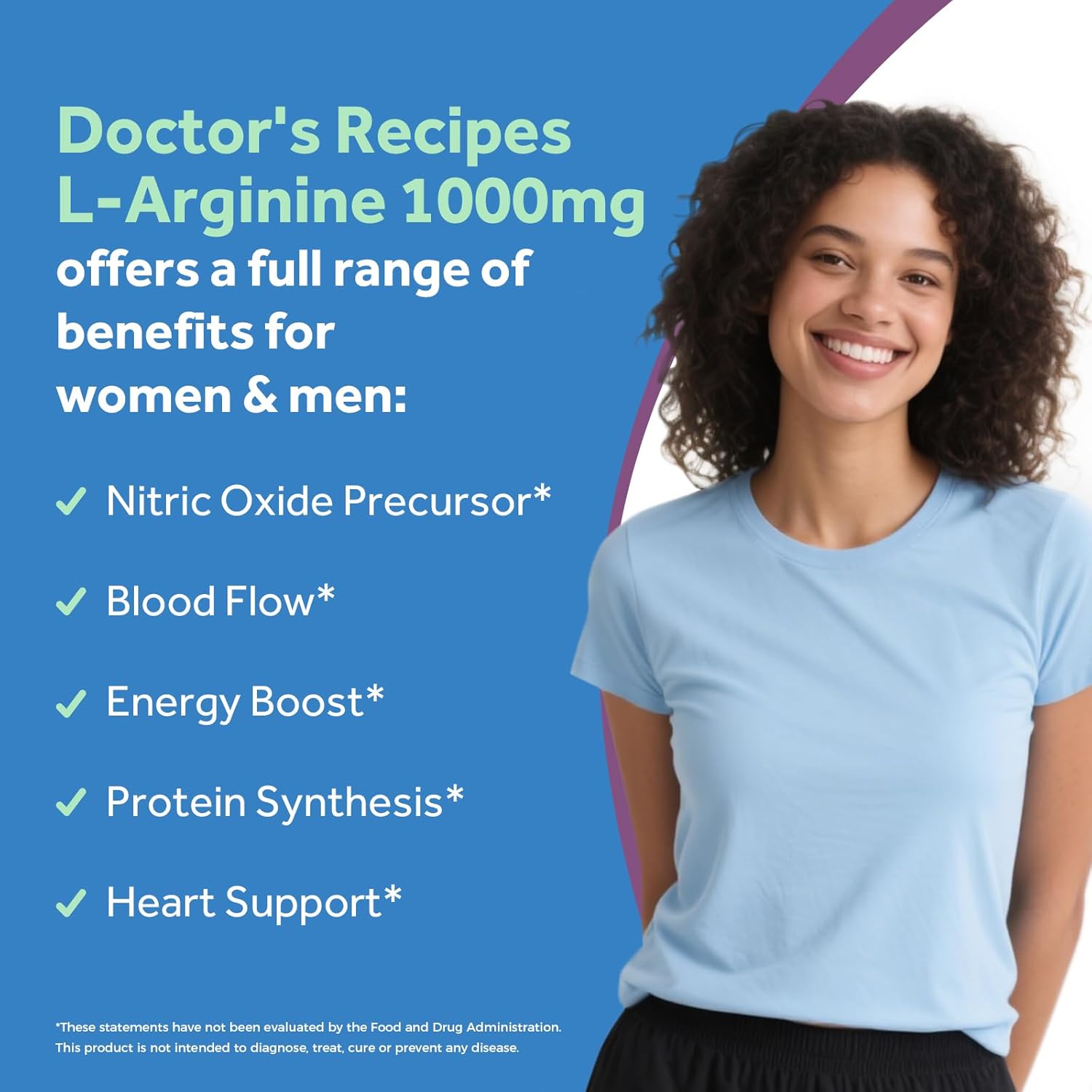 Doctor’s Recipes L-Arginine 1000mg, Maximum Dose, Nitric Oxide Production, Blood Flow and Vascular Function, Endurance and Workout Support for Men and Women, 120 Coated Tablets