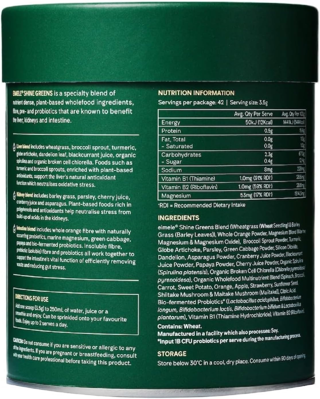 eimele | Shine Greens | Plant-Based Superfood Greens Powder for Gut Health | Supports Energy, Digestion & Immunity | Packed with Antioxidants, Essential Nutrients & Probiotics | 42 Servings (5.29oz)