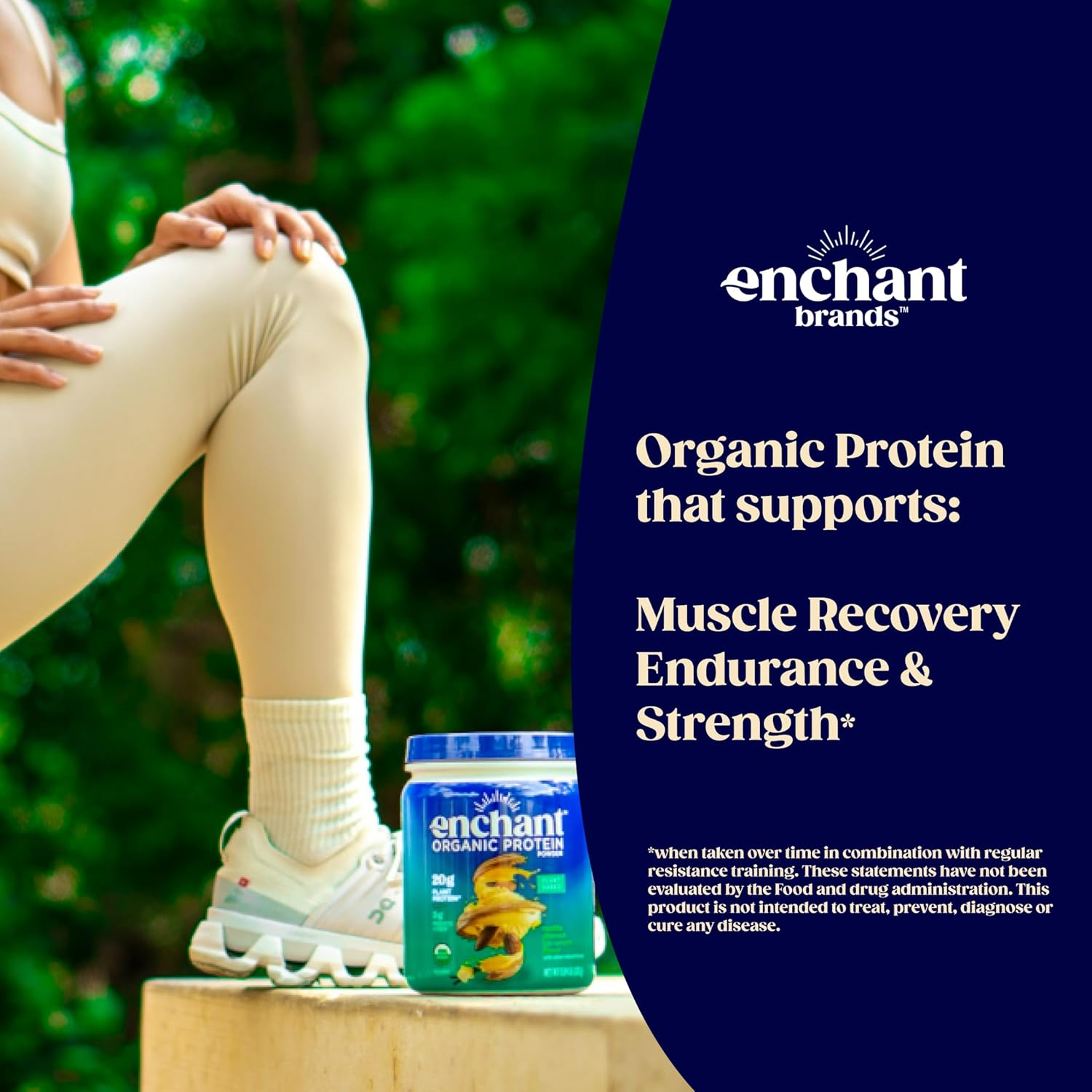 Enchant Organic Protein Powder, Vanilla Almond flavor – 20g Plant Protein sourced from North American Farms, 5g Prebiotic + fiber, USDA Organic, Non-GMO, Plant-based, Non-Dairy, Vegan, 0.84 lb