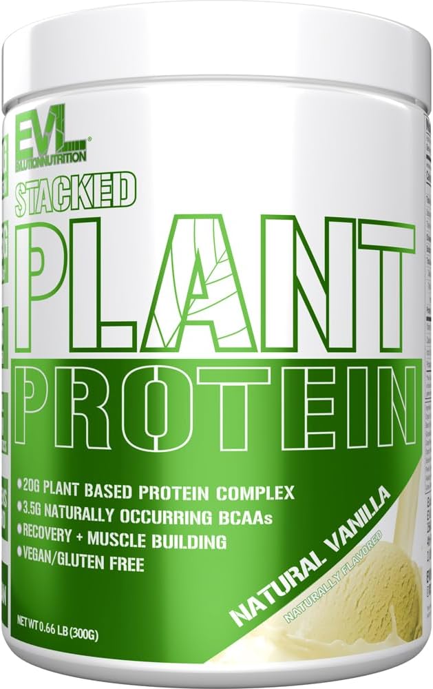 Evlution Nutrition Stacked Plant Protein Powder, Vegan, Non-GMO, Gluten-Free, Probiotics, BCAAs, Fiber, Plant-Based Protein Complex, 300G (Natural Vanilla)
