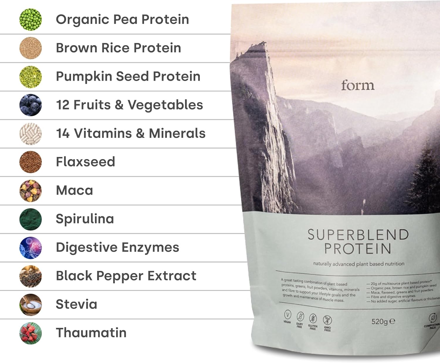 Form Superblend Protein – Vegan Protein Powder with Superfoods, Vitamins and Minerals – 20g of Plant Based Protein per Serving (Vanilla)