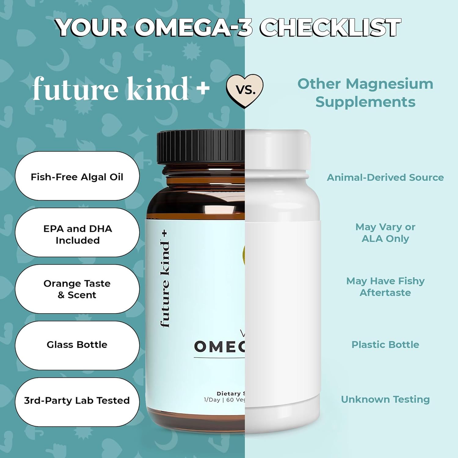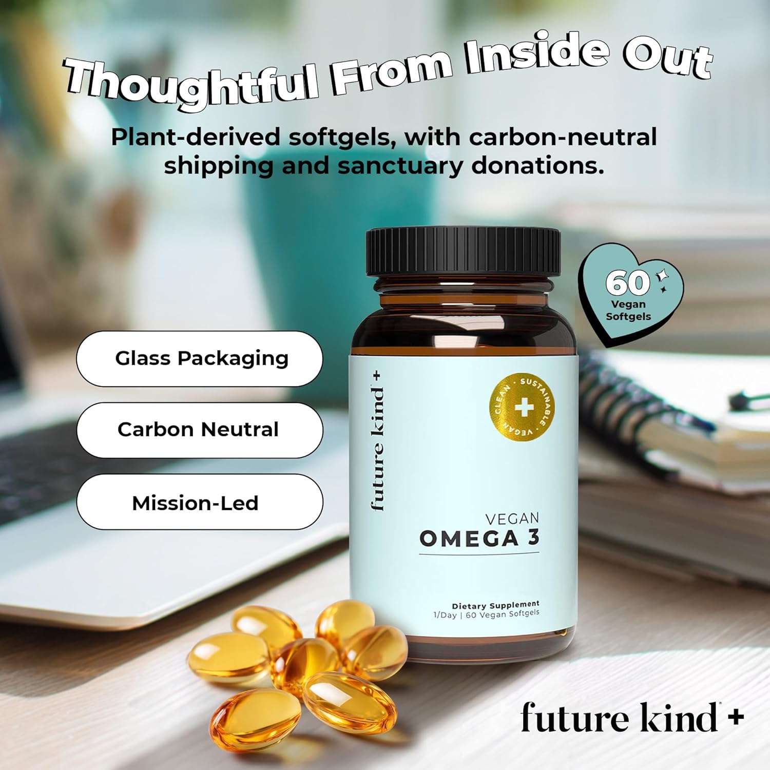 Future Kind Omega-3 Supplement for Clarity, Memory, and Mobility Comfort, 2 Months Supply of Citrus-Scented Softgels with EPA and DHA, Vegan Omega-3 Supplement from Algae, Carrageenan Free, 60 Count