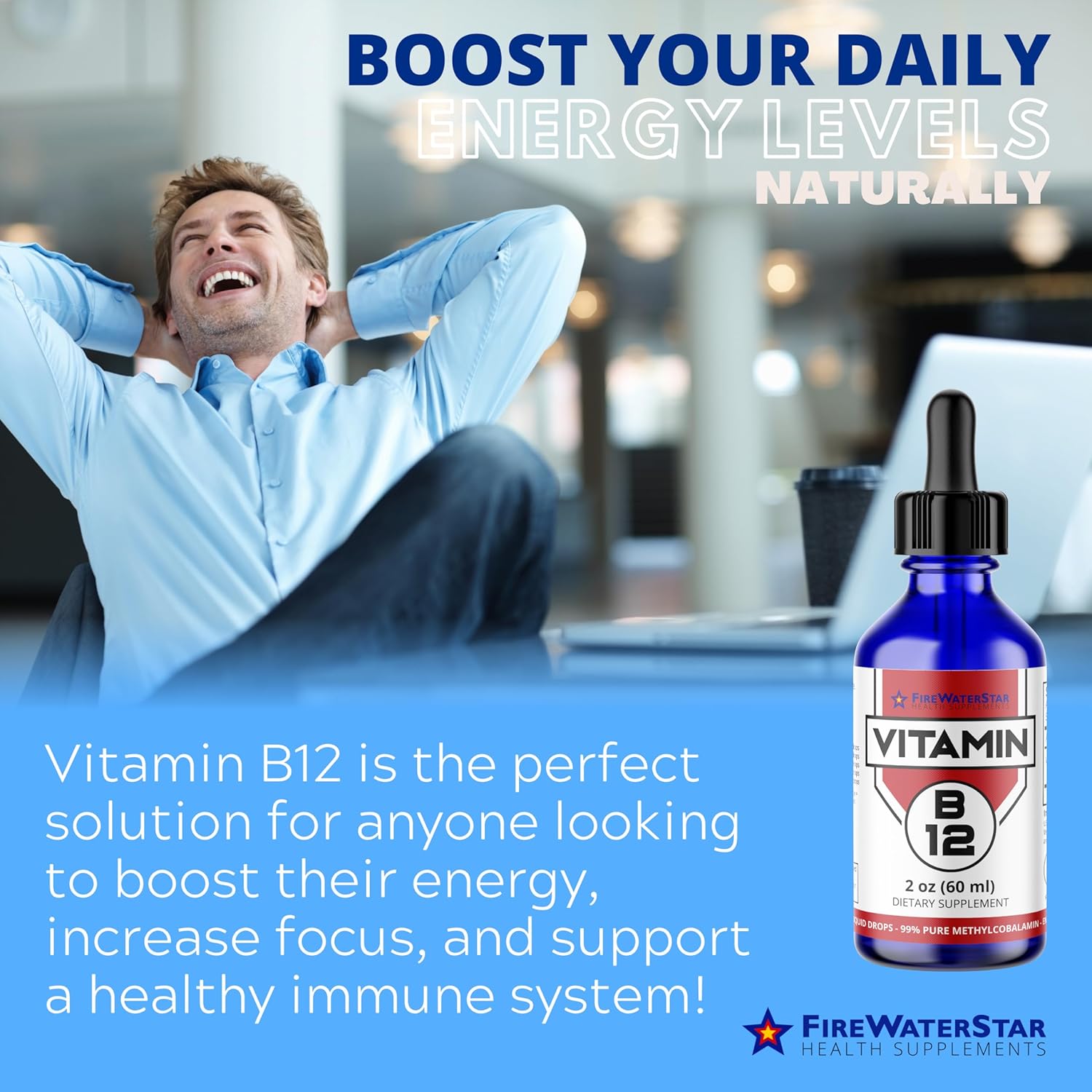 FWS Liquid B12 Drops – Vitamin B12 Supplement – 5000 mcg Sublingual Pure Methylcobalamin – Organic, Non-GMO, Vegan – High Absorption Methyl B12 – Adjustable Dosing, 2 oz