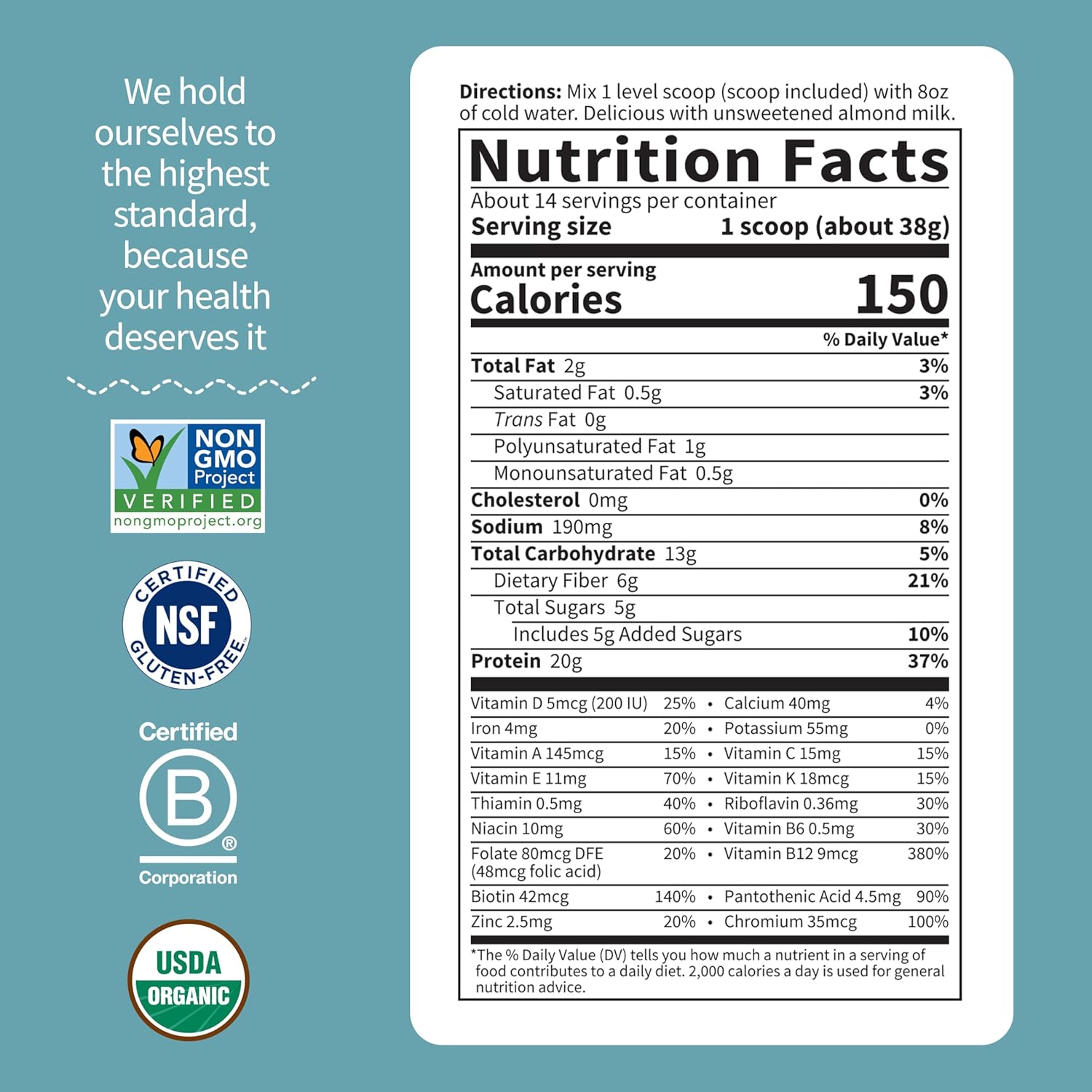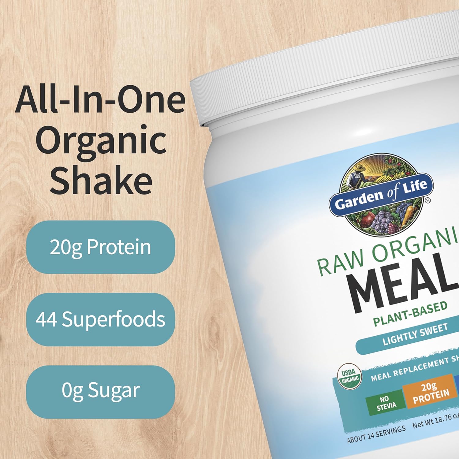 Garden of Life Meal Replacement Shakes, Vegan Protein Powder, Raw Organic Meal, Lightly Sweet Powder with Plant Based Pea Protein, Sprouts, Greens, Probiotics, Dairy Free 14 Servings