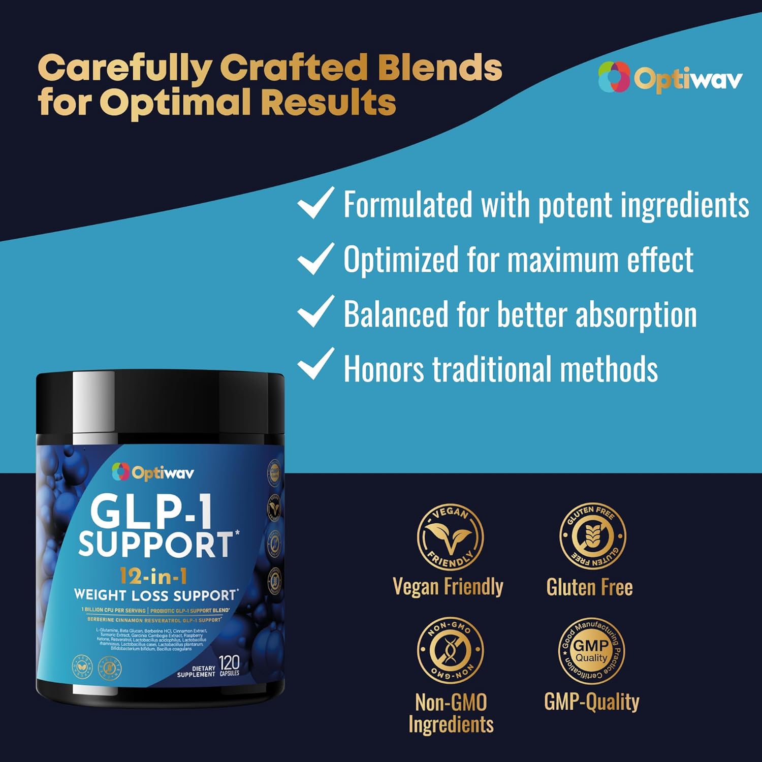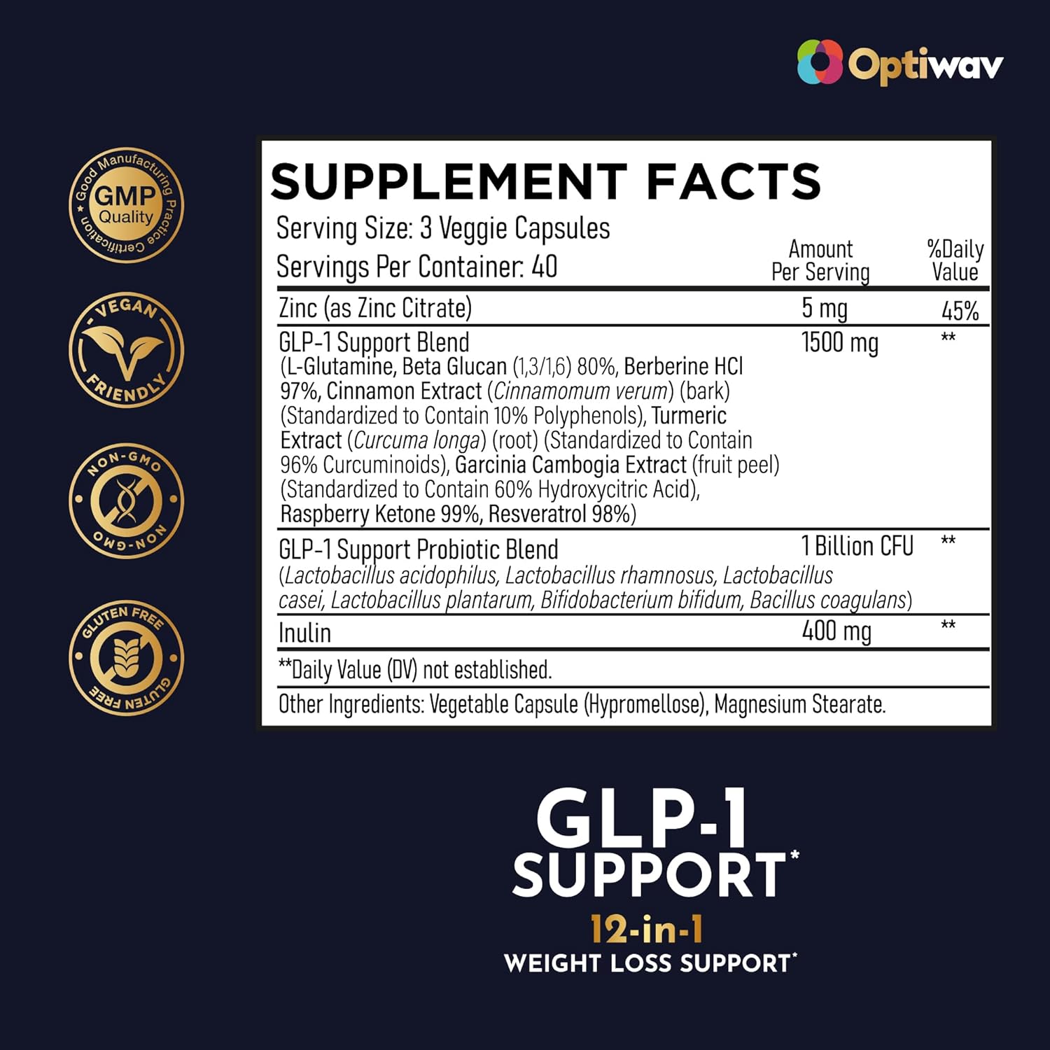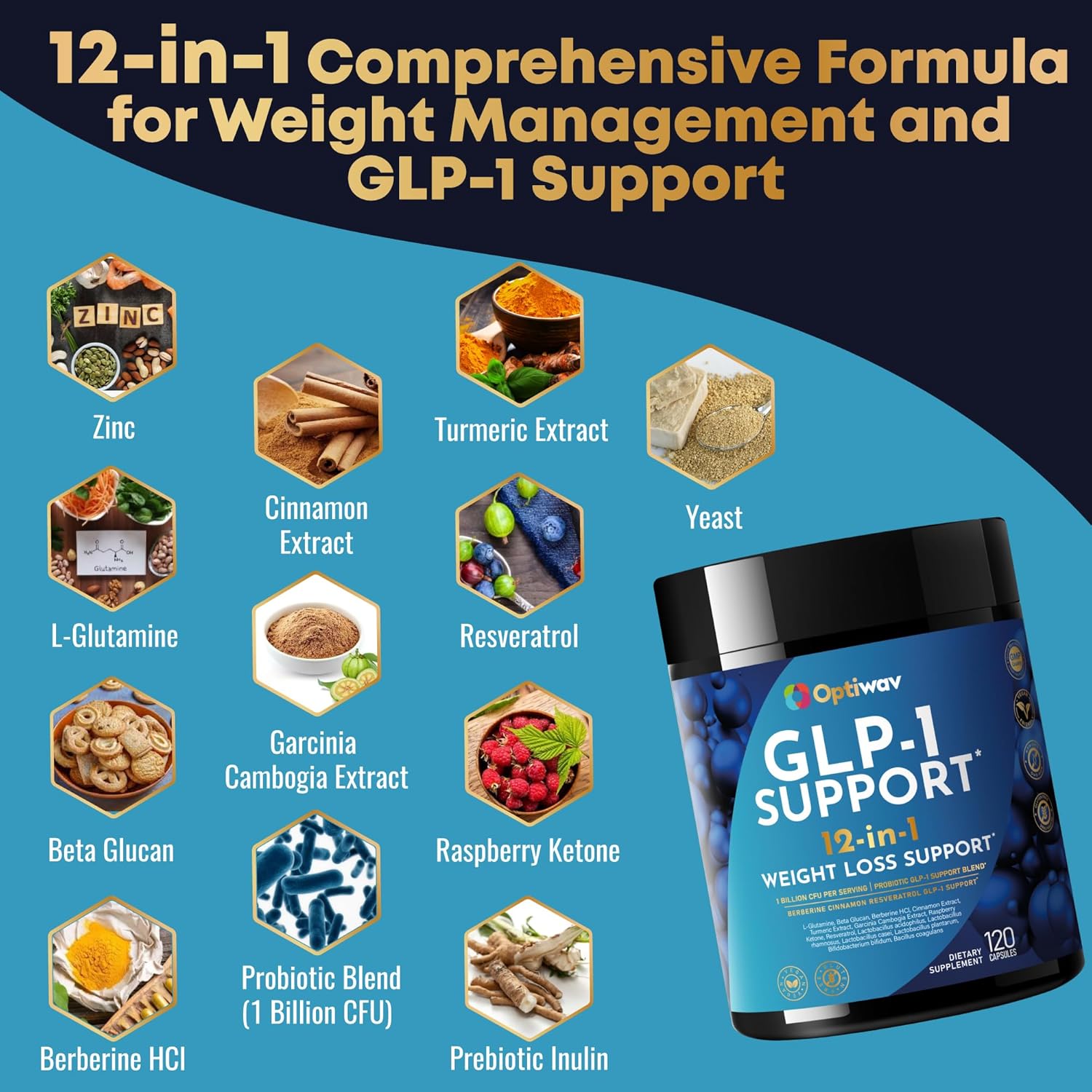 GLP-1 Support Probiotic Weight Loss Supplement – Natural GLP1 Support Appetite Suppressant for Women Men – for Daily Fat Burn Hunger Control Metabolism Boost Gut & Curb Cravings