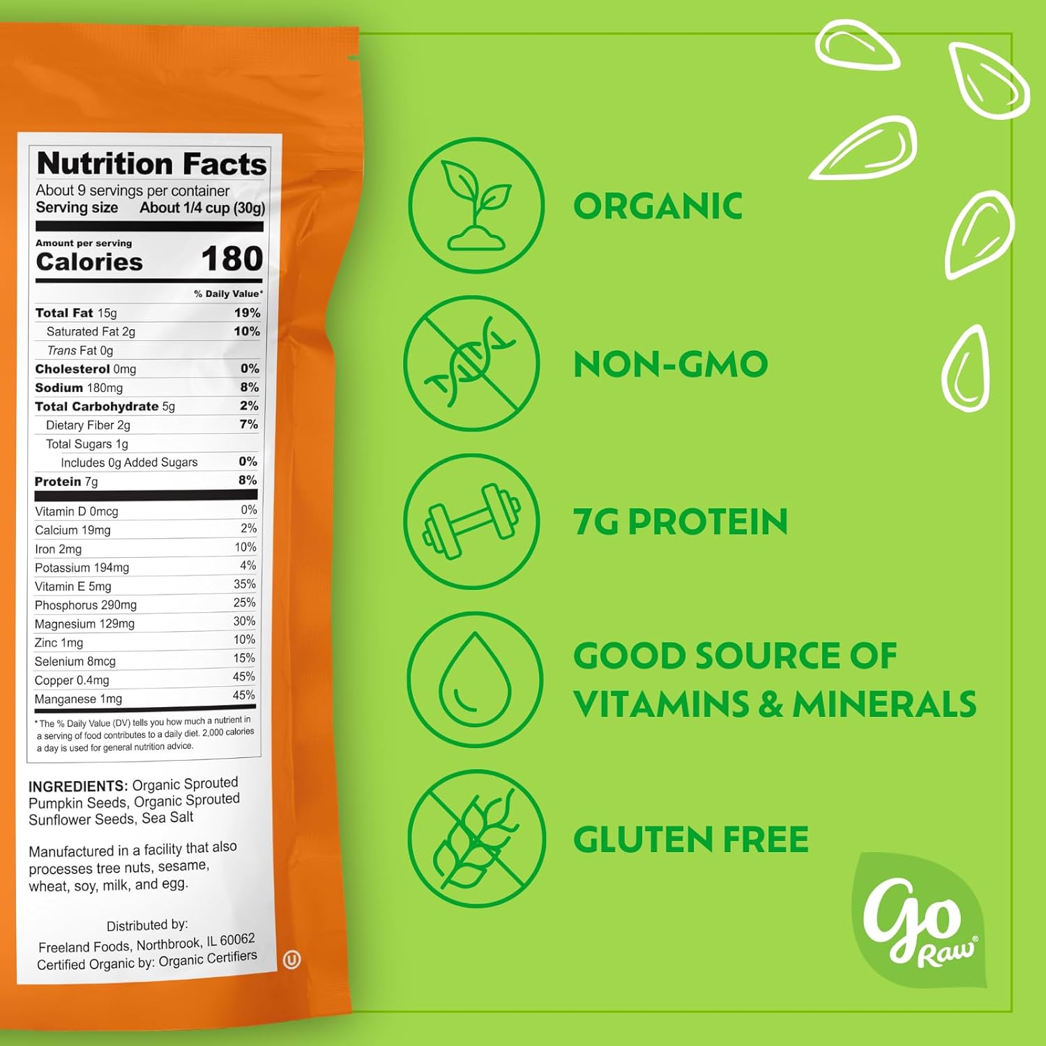 Go Raw Organic Sprouted Pumpkin & Sunflower Seeds, 10 oz, Sea Salted, Keto, Kosher, Superfood