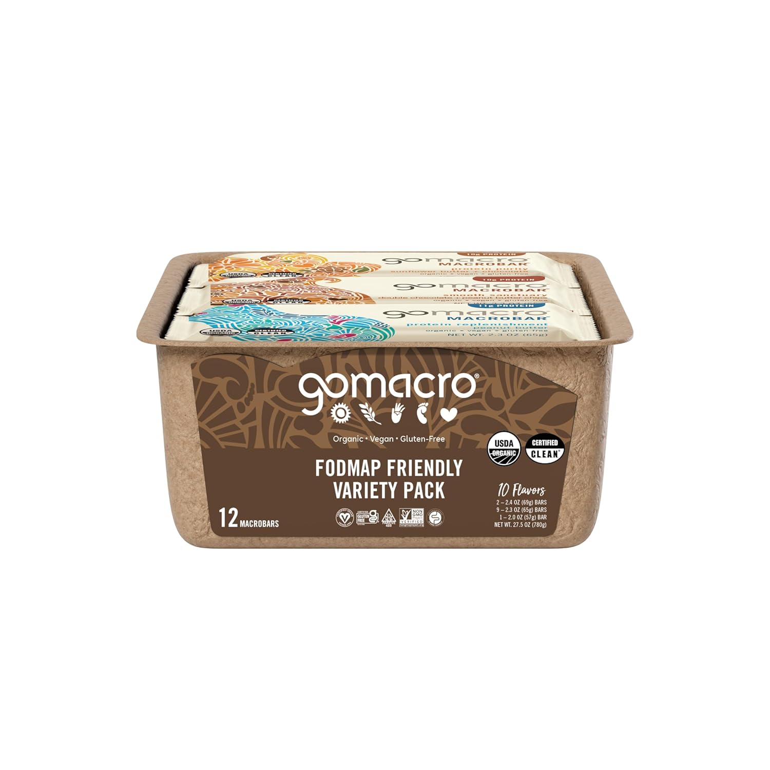 GoMacro MacroBar Organic Vegan Protein Bars – FODMAP Friendly Variety Pack (2.0-2.3 Ounce Bars, 12 Count)