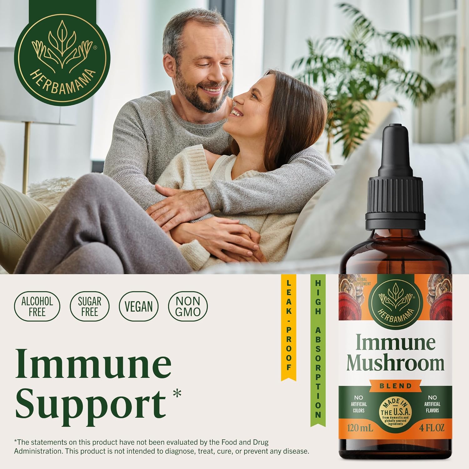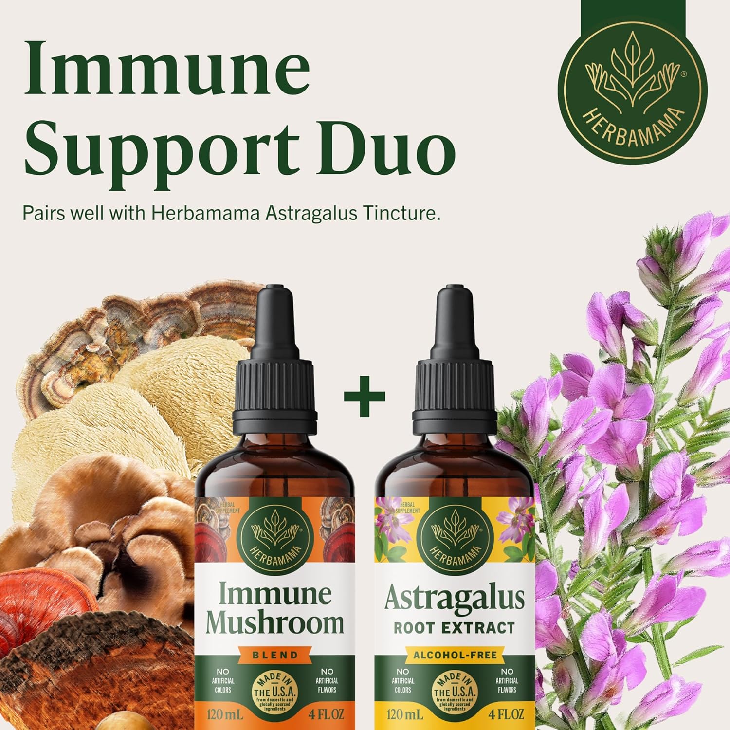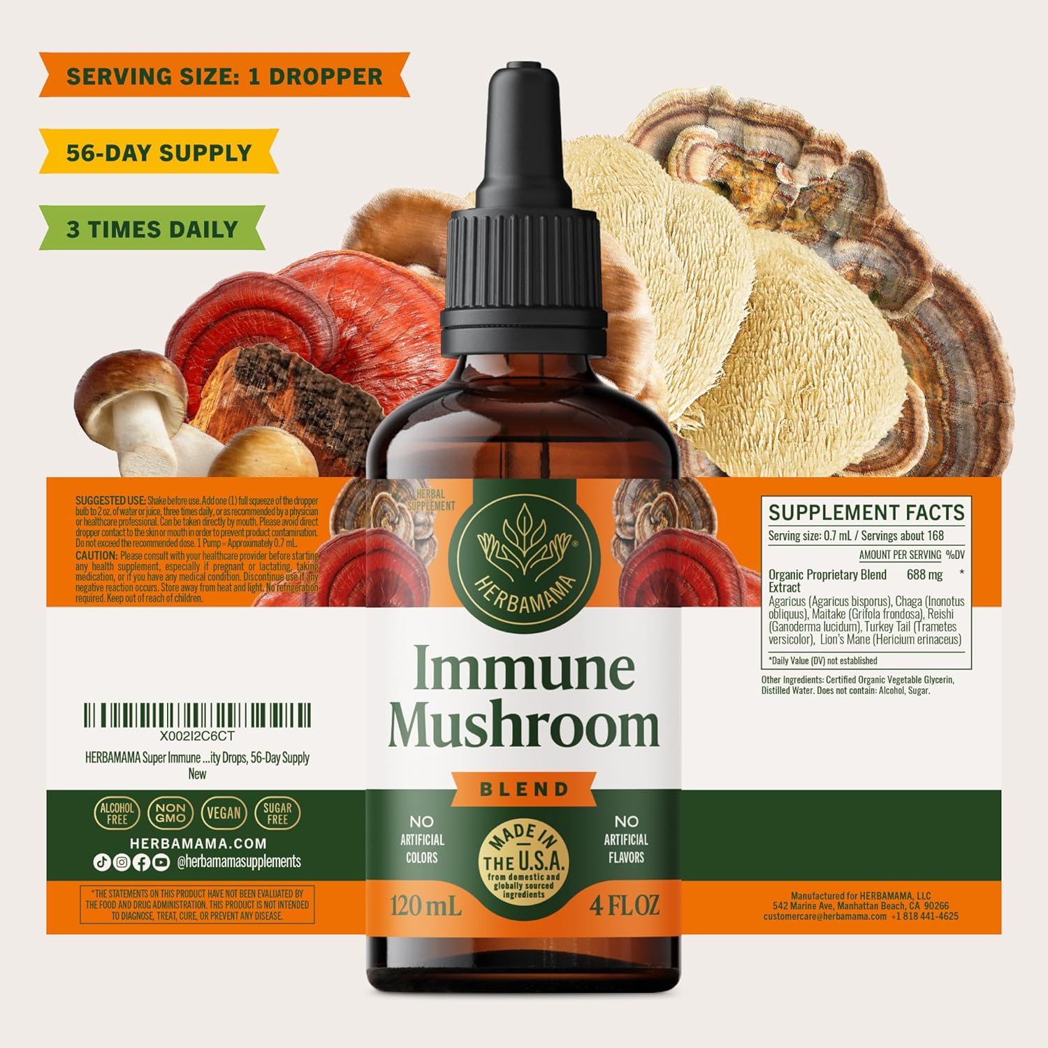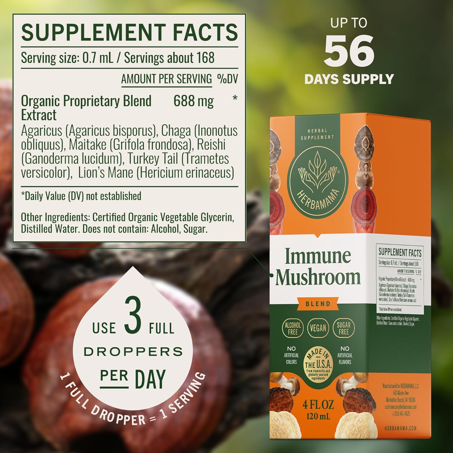 HERBAMAMA Super Immune Mushroom Supplement – Vegan 8-Mushroom Complex Blend with Reishi, Lion’s Mane, Cordyceps & Chaga Extract – Non-GMO, Alcohol-Free, Sugar-Free Immunity Drops, 56-Day Supply