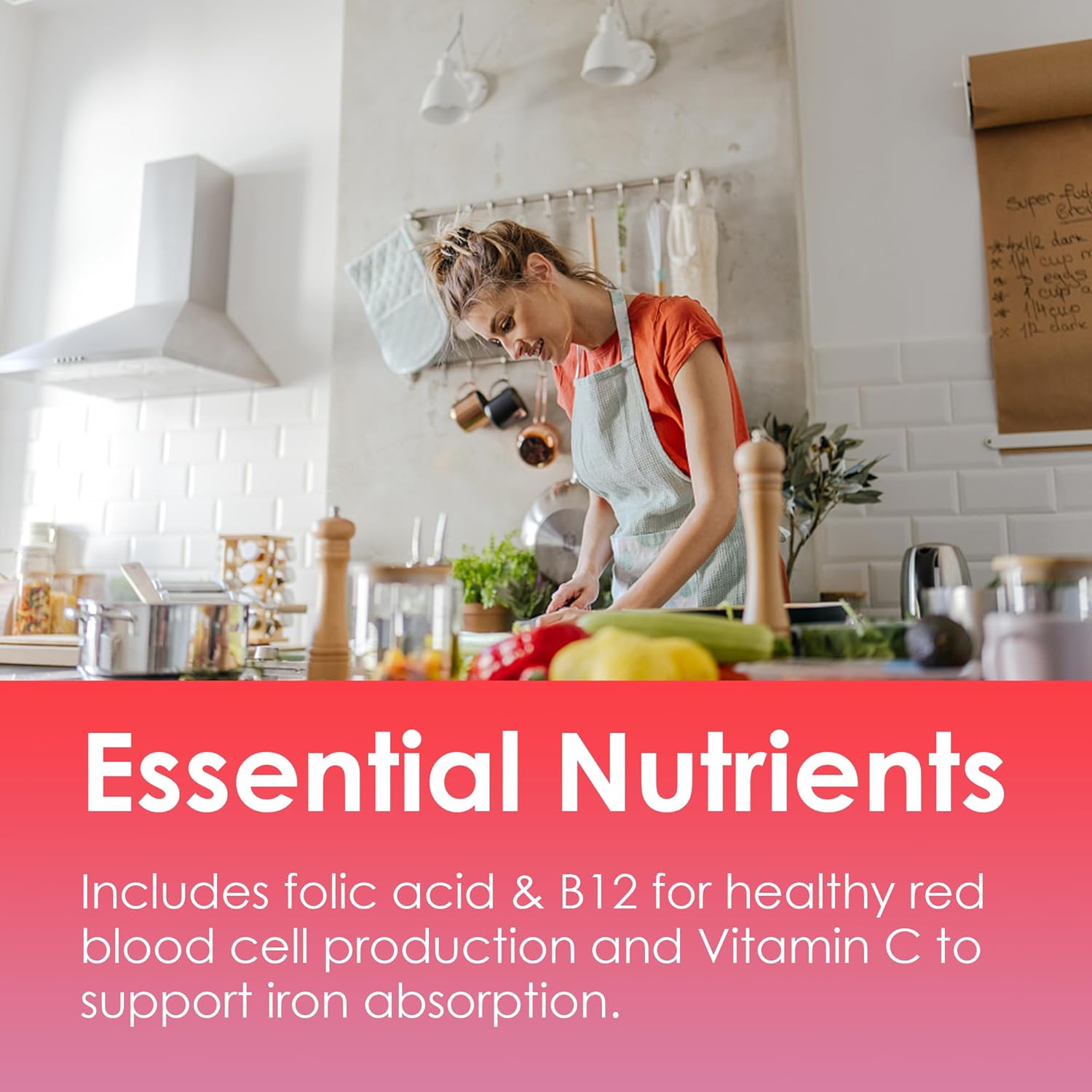 Iron Gummies for Women 25mg Plus Vitamin C, Beet Root, Vitamin B12, Folate for Iron Deficiency, Anemia, Energy Boost, Sugar Free Iron Supplement, Non-Constipating, No After Taste, 60 Cts