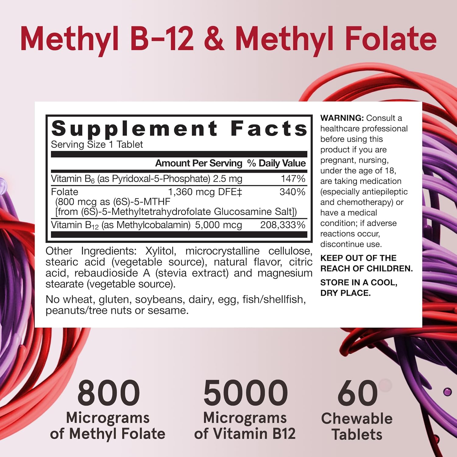 Jarrow Formulas Methyl B-12 & Methyl Folate, Bioactive Vitamin B9 and Vitamin B12 Supplement, Supports Cellular Energy Production, Healthy Brain Function & Metabolism, 60 Chewable Tablets, 60 Servings