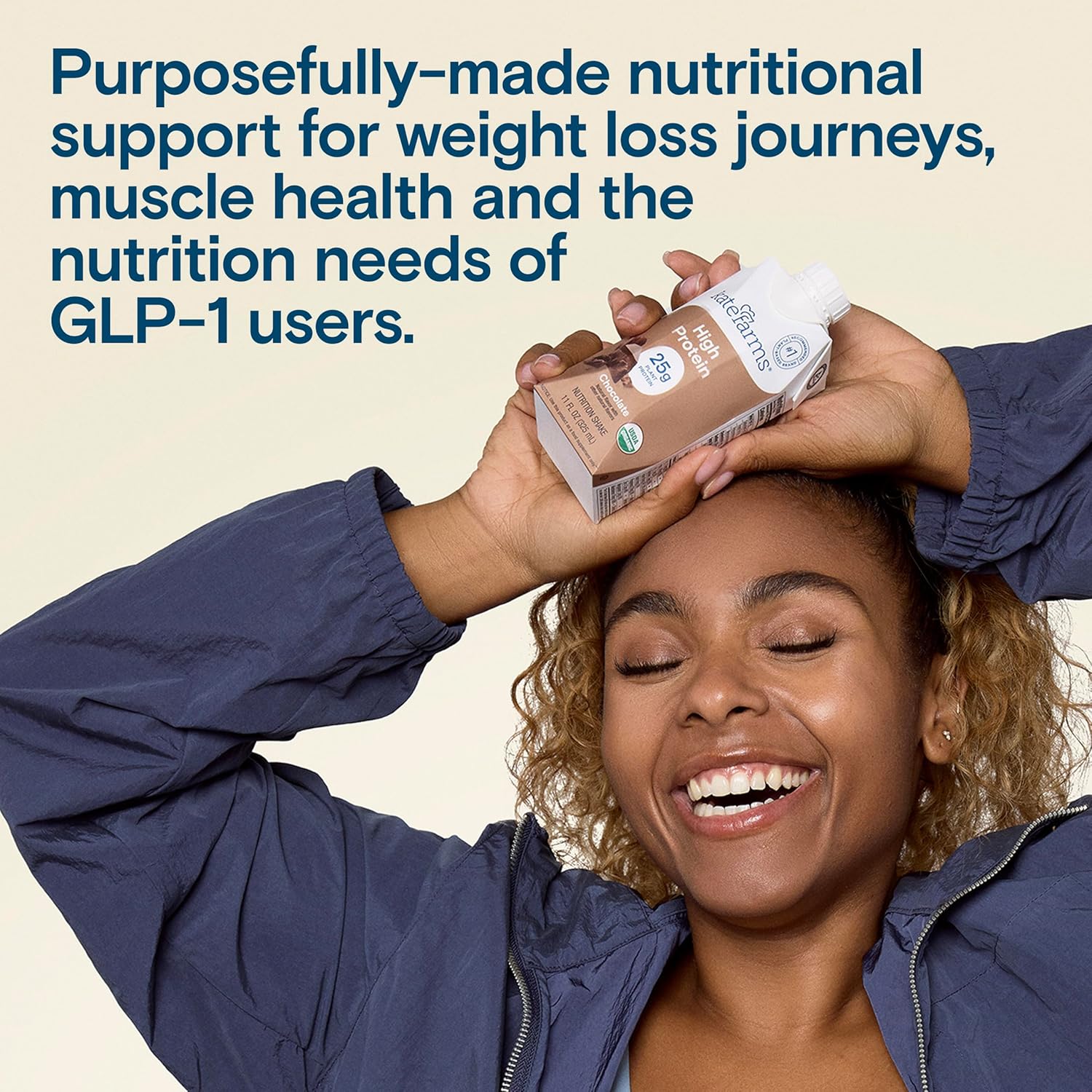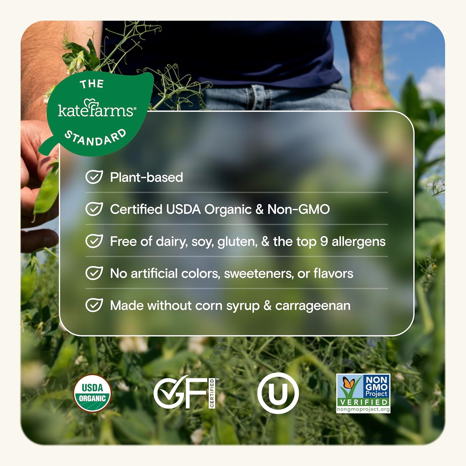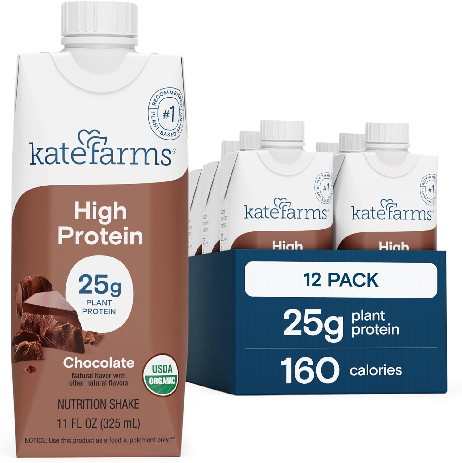 KATE FARMS Organic High Protein Chocolate Nutrition Shake, 25g Protein, 6g Fiber, 27 Vitamins and Minerals, 0g Sugar, Protein Drink, 11 oz (12 Pack)