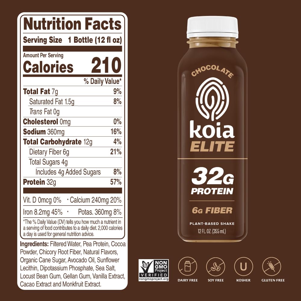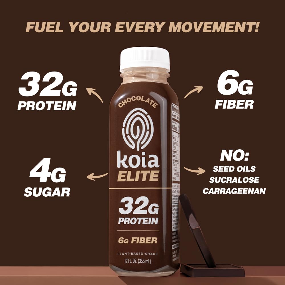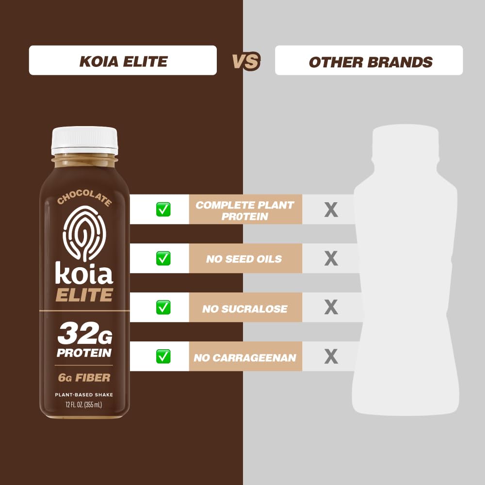 Koia Elite – Chocolate – 32g Protein – Ready To Drink Plant Protein Shake – Low Sugar, Dairy Free, Gluten Free, Soy Free, Non GMO, Kosher, Vegan (12 Fl Oz)
