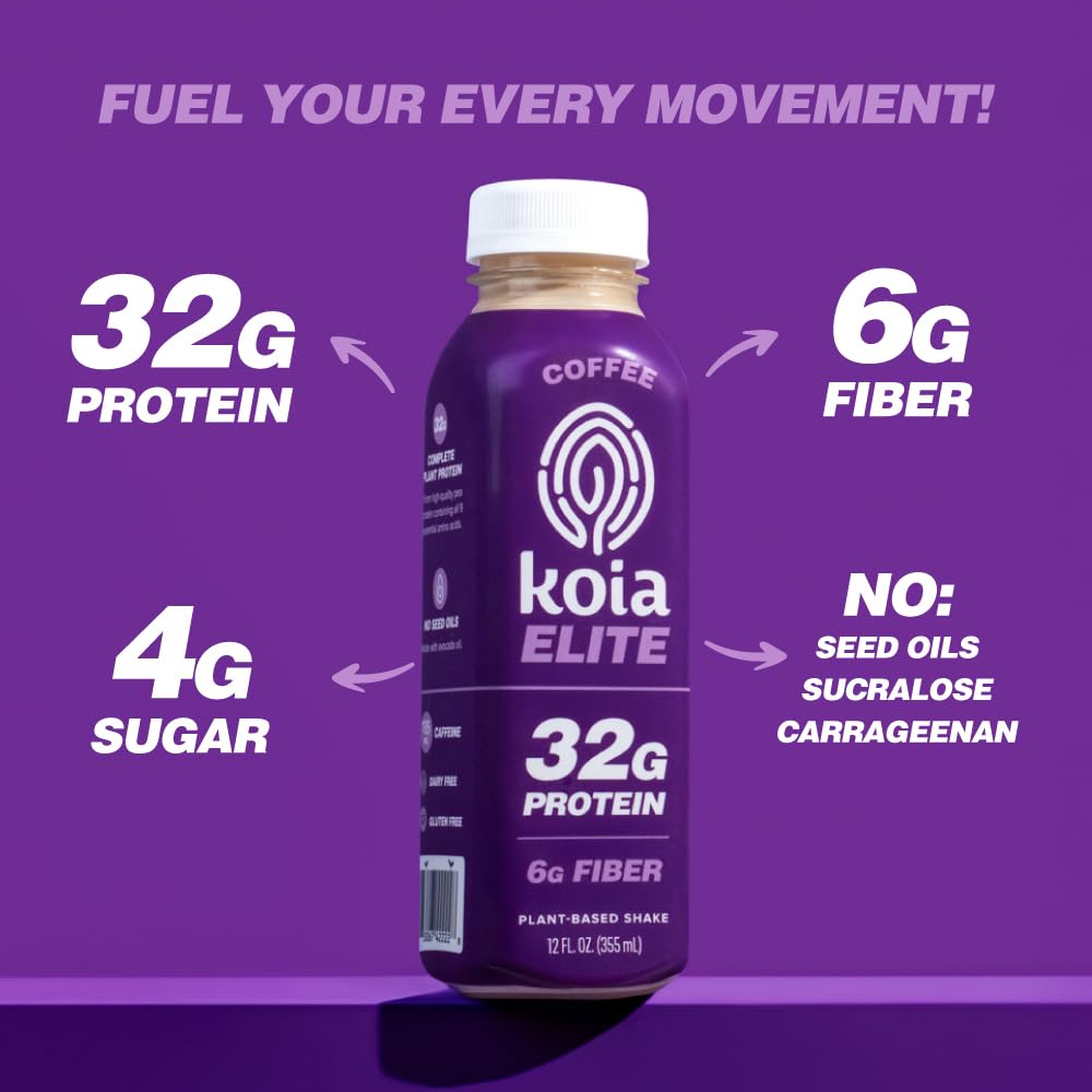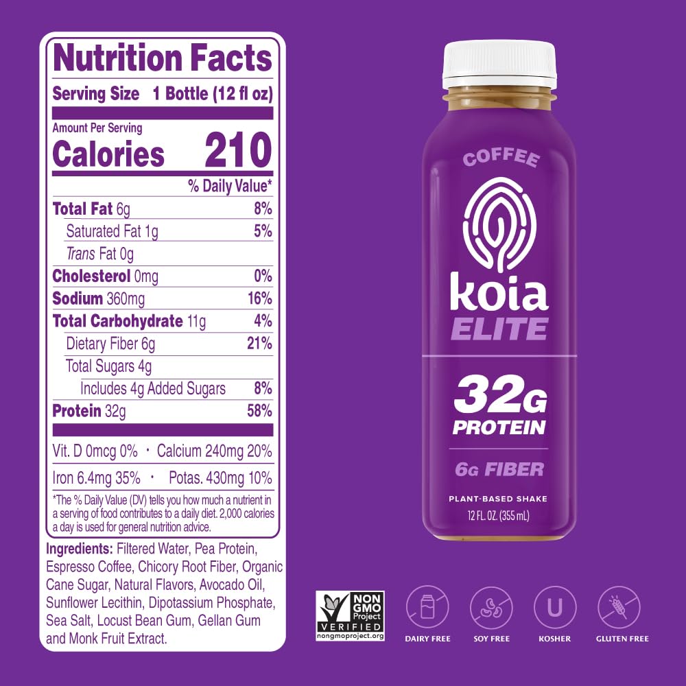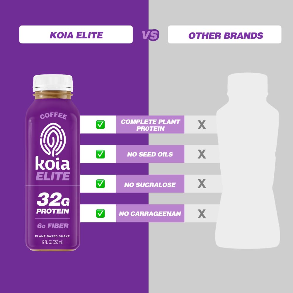 Koia Elite – Coffee – 32g Protein – Ready To Drink Plant Protein Shake – Low Sugar, Dairy Free, Gluten Free, Soy Free, Non GMO, Kosher, Vegan (12 Fl Oz)