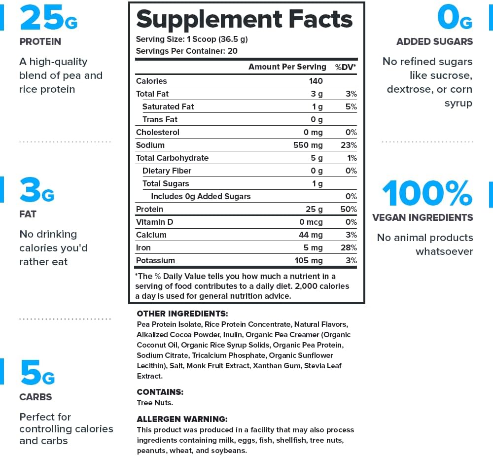 LEGION Plant+ Vegan Protein Powder, Chocolate – Rice and Pea, Plant Based Protein Blend. Gluten Free, GMO Free, Naturally Sweetened and Flavored, 20 Servings, (Chocolate)