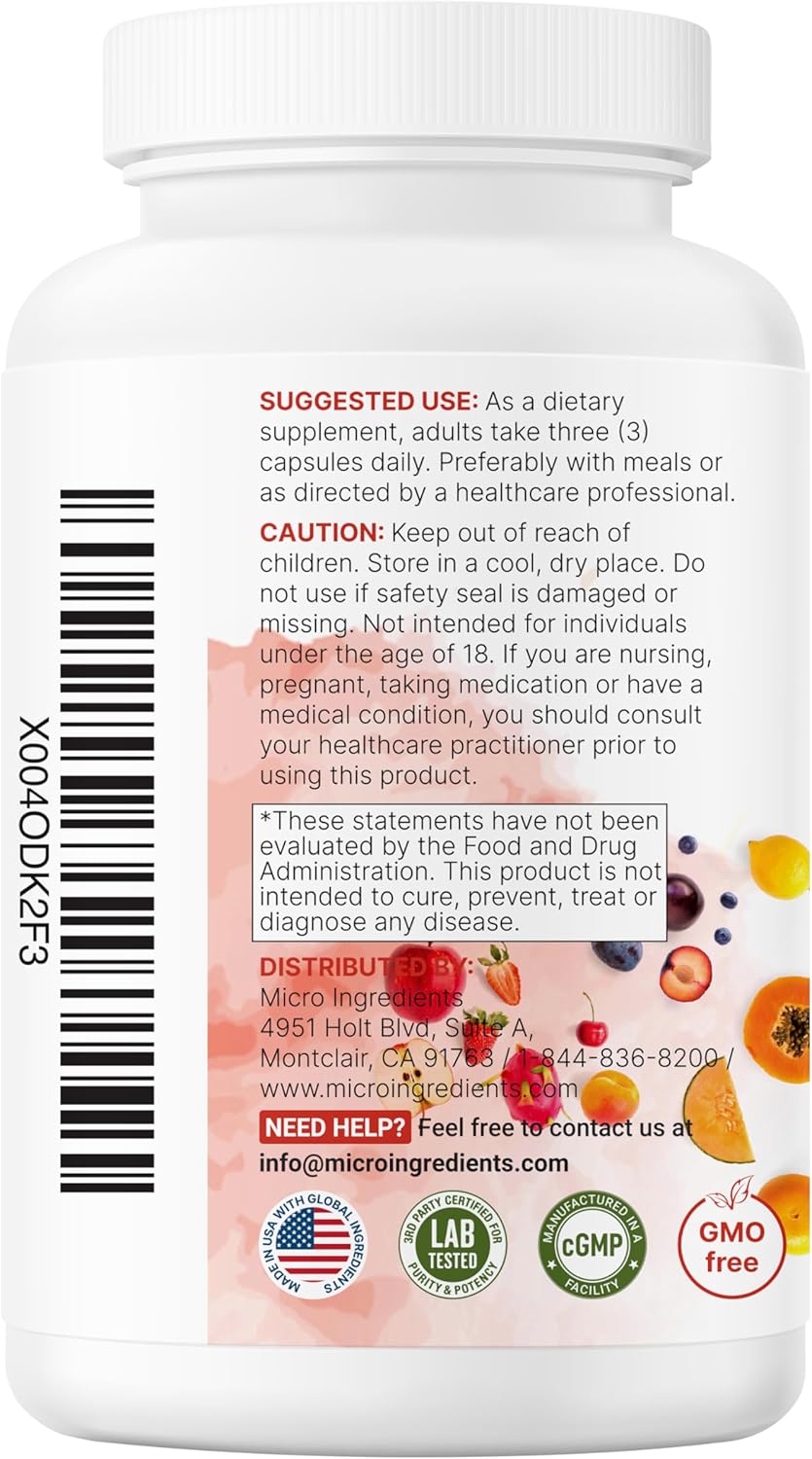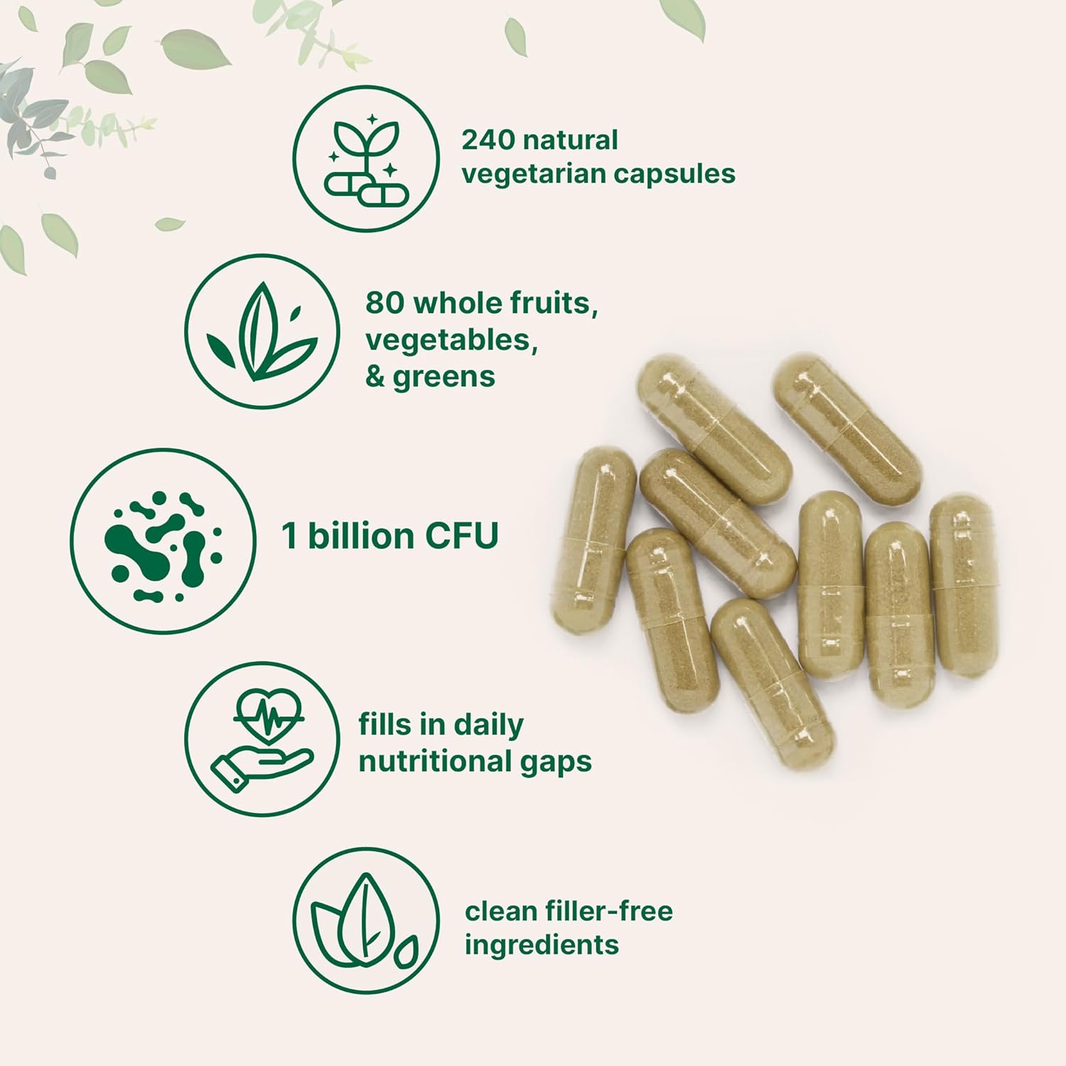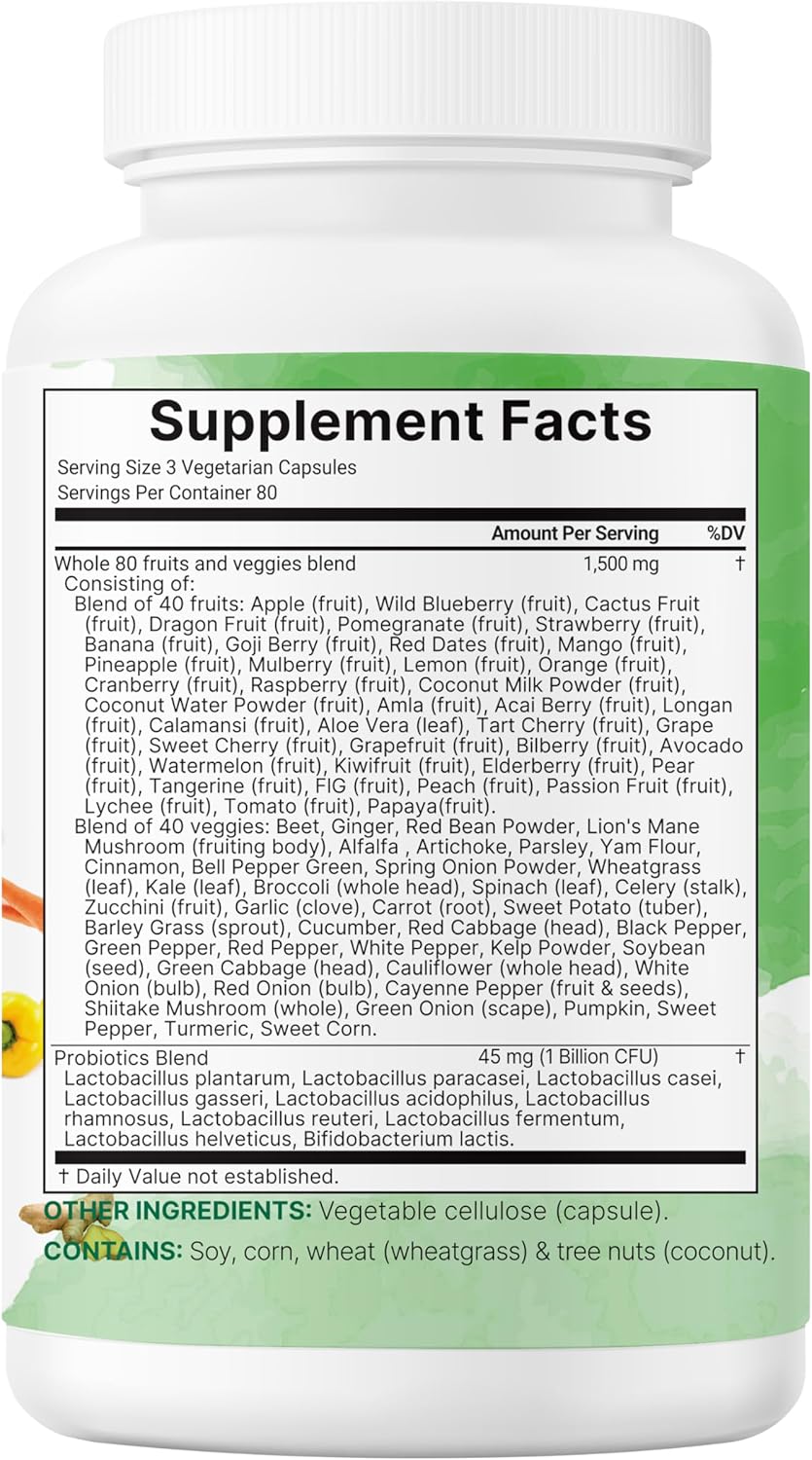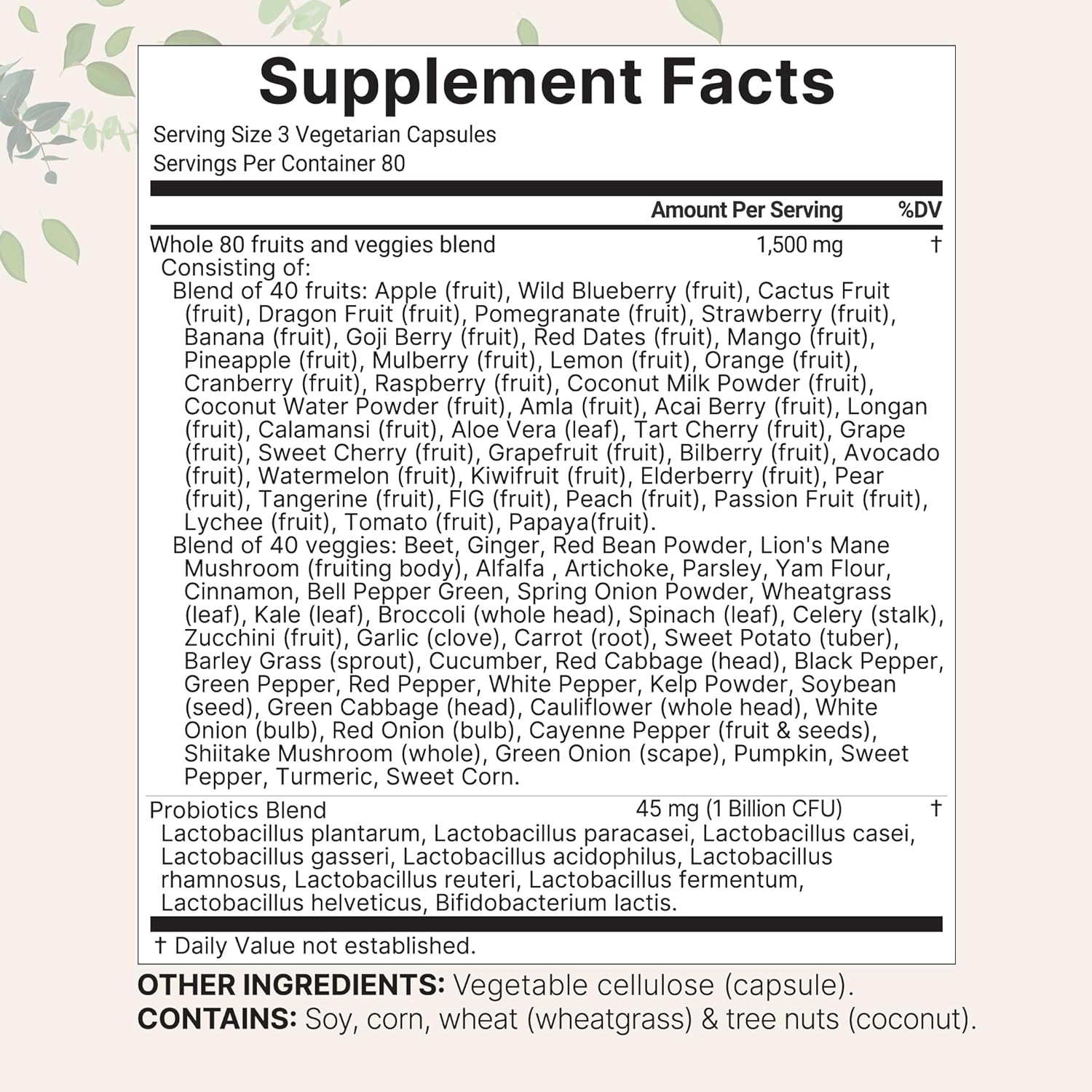 Micro Ingredients Fruit and Veggies Supplement with Probiotics, 240 Vegetarian Capsules | 80+ Super Greens & Fruits Complex | Immune, Gut & Digestive Health Support