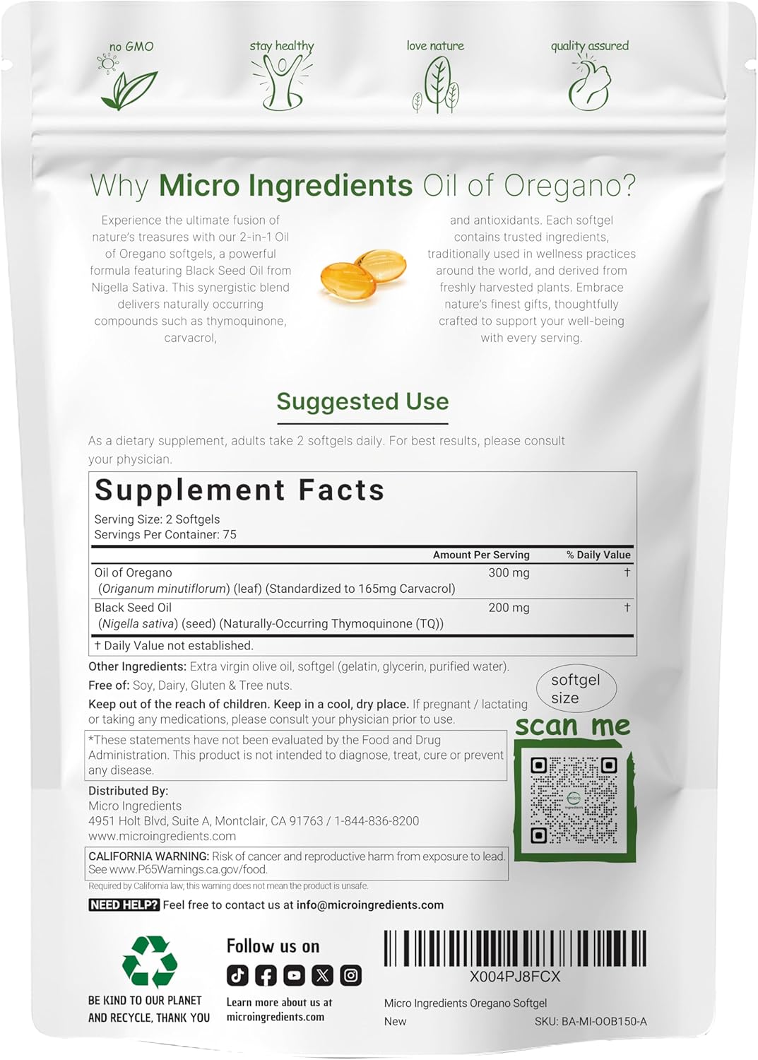 Micro Ingredients Oil of Oregano Softgels, 150 Count | 2 in 1 Formulated with Black Seed Oil | 4X Strength Carvacrol & Thymoquinone | Plant Based, Non-GMO