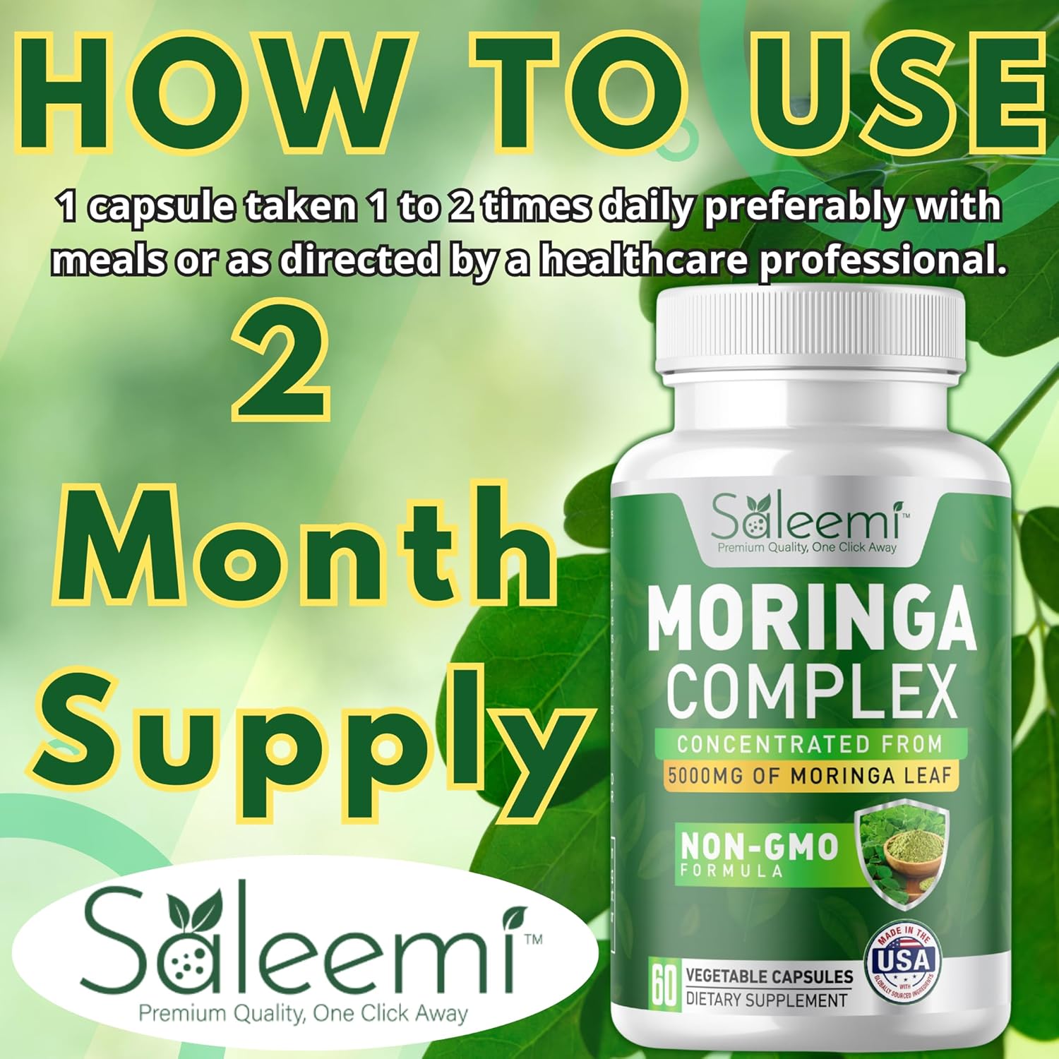 Moringa Capsules – Premium Moringa Oleifera Leaf & Seed Extract | Green Superfood for Energy, Immunity & Vitality | 100% Pure Natural Plant-Based Supplement | Non-GMO, 60 Vegan Capsules