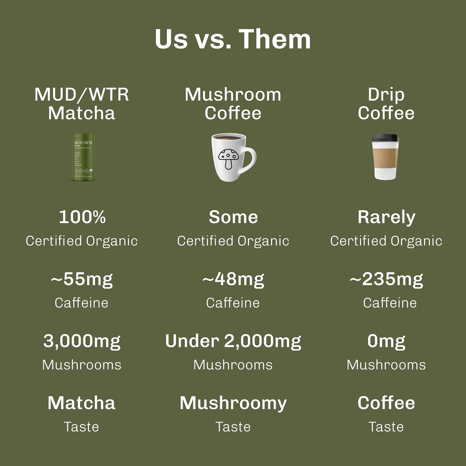 MUDWTR Mushroom Matcha Powder | 3,000mg of Adaptogenic Mushrooms | Japanese Matcha Powder Blend | USDA Organic | Energy, Focus & Immunity Support | Lion’s Mane, Chaga, Reishi, Cordyceps | 30 Servings