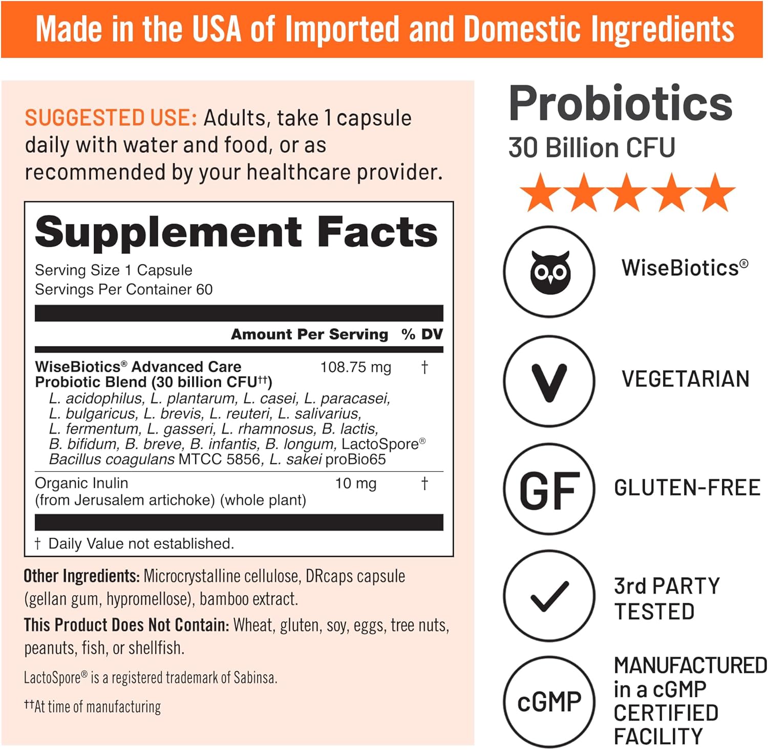 NatureWise Max Probiotics for Women & Men – 30 Billion CFU 18 Strains With Prebiotics – For Gut & Digestive Health – Delayed-Release Capsules, Gluten Free – 60 Capsules[2-Month Supply]