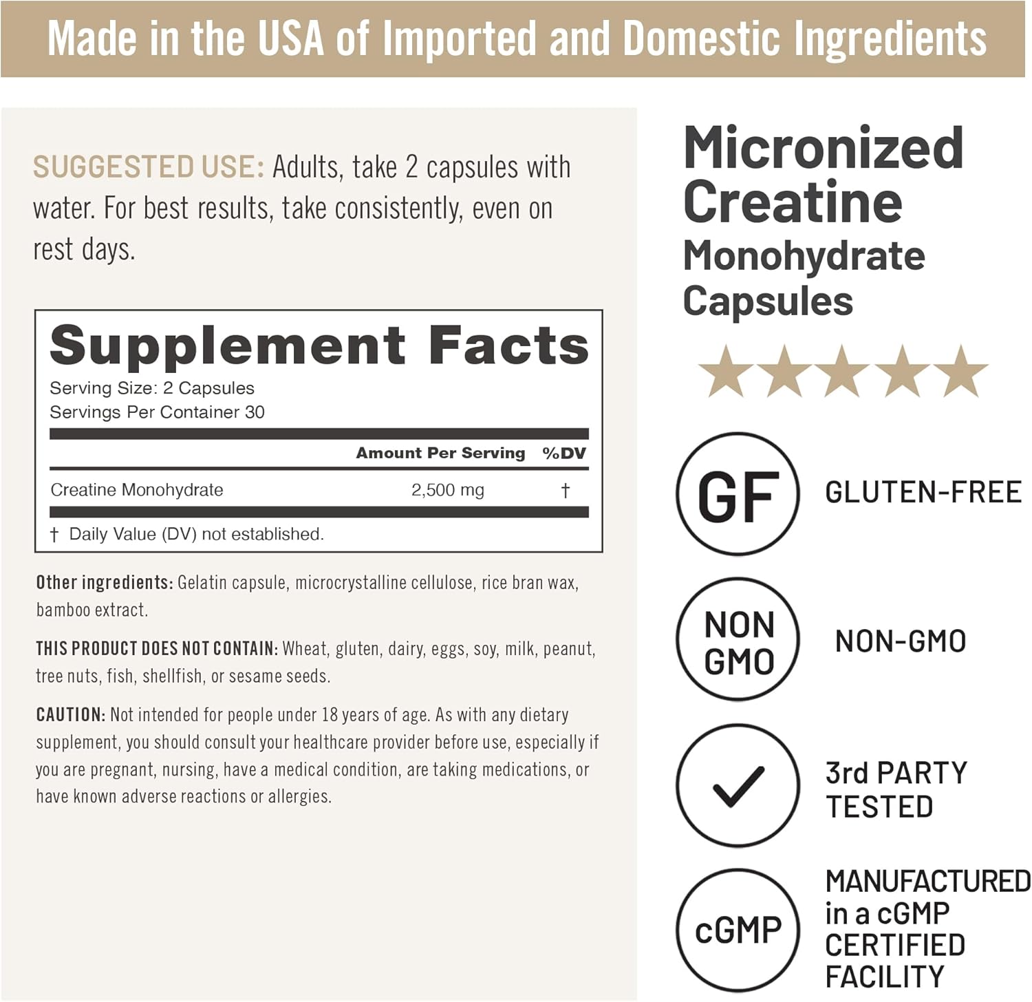 NatureWise Micronized Creatine Monohydrate Pills, 2500mg Per Serving – Creatine for Women & Men – Pure, Unflavored, Supports Lean Muscle Mass, Endurance – 60 Capsules[30-Day Supply]
