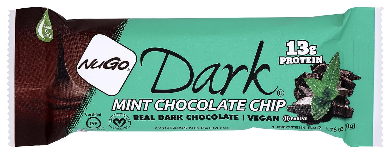 NuGo Dark Chocolate Mint Chocolate Chip, 13g Vegan Protein, Gluten Free, Kosher Pareve, 1.76 oz