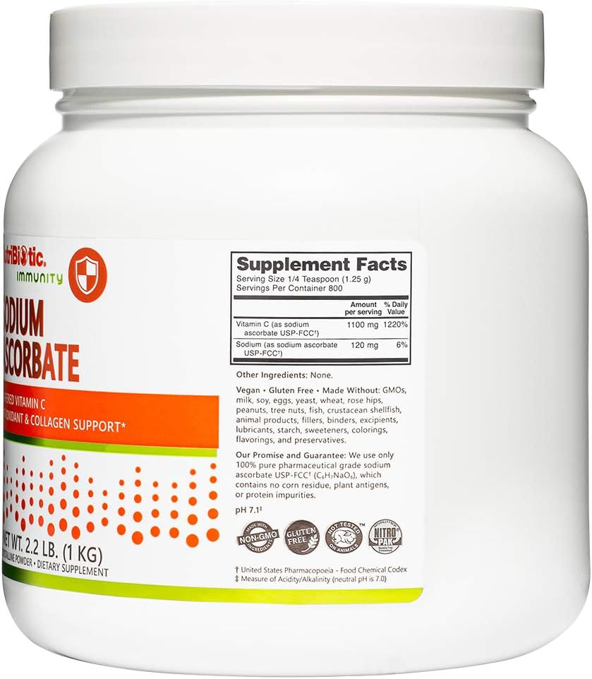 NutriBiotic – Sodium Ascorbate Buffered Vitamin C Powder, 2.2 Lb | Vegan, Non-Acidic & Easier on Digestion Than Ascorbic Acid | Essential Immune Support & Antioxidant Supplement | Gluten & GMO Free