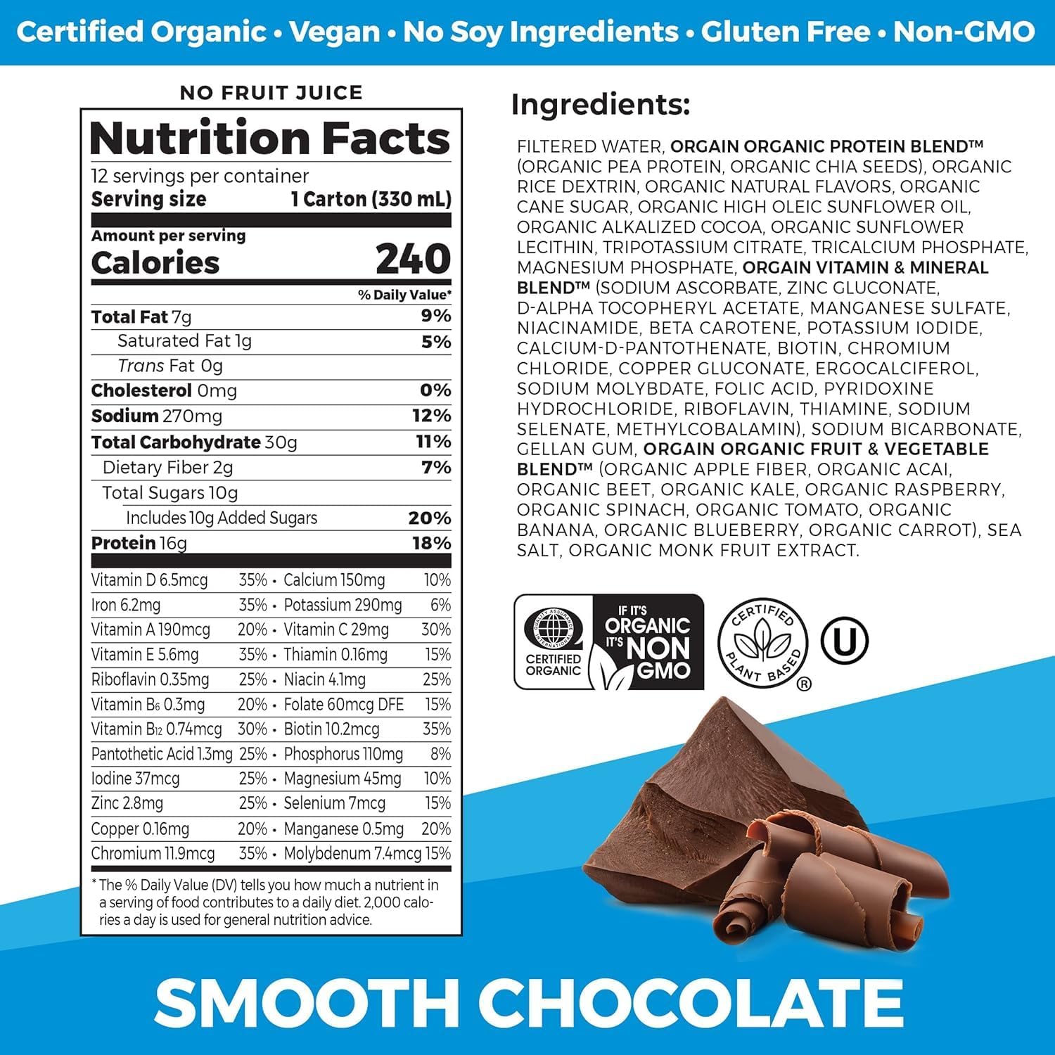 Orgain Organic Nutritional Vegan Protein Shake, Smooth Chocolate – 16g Plant Based Protein, Meal Replacement, 22 Vitamins & Minerals, Fruits & Vegetables, Gluten Free, Non-GMO, 11 Fl Oz (Pack of 4)