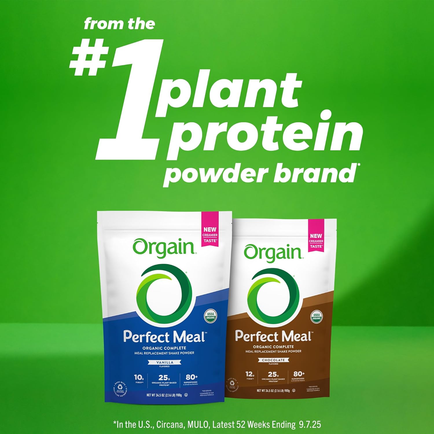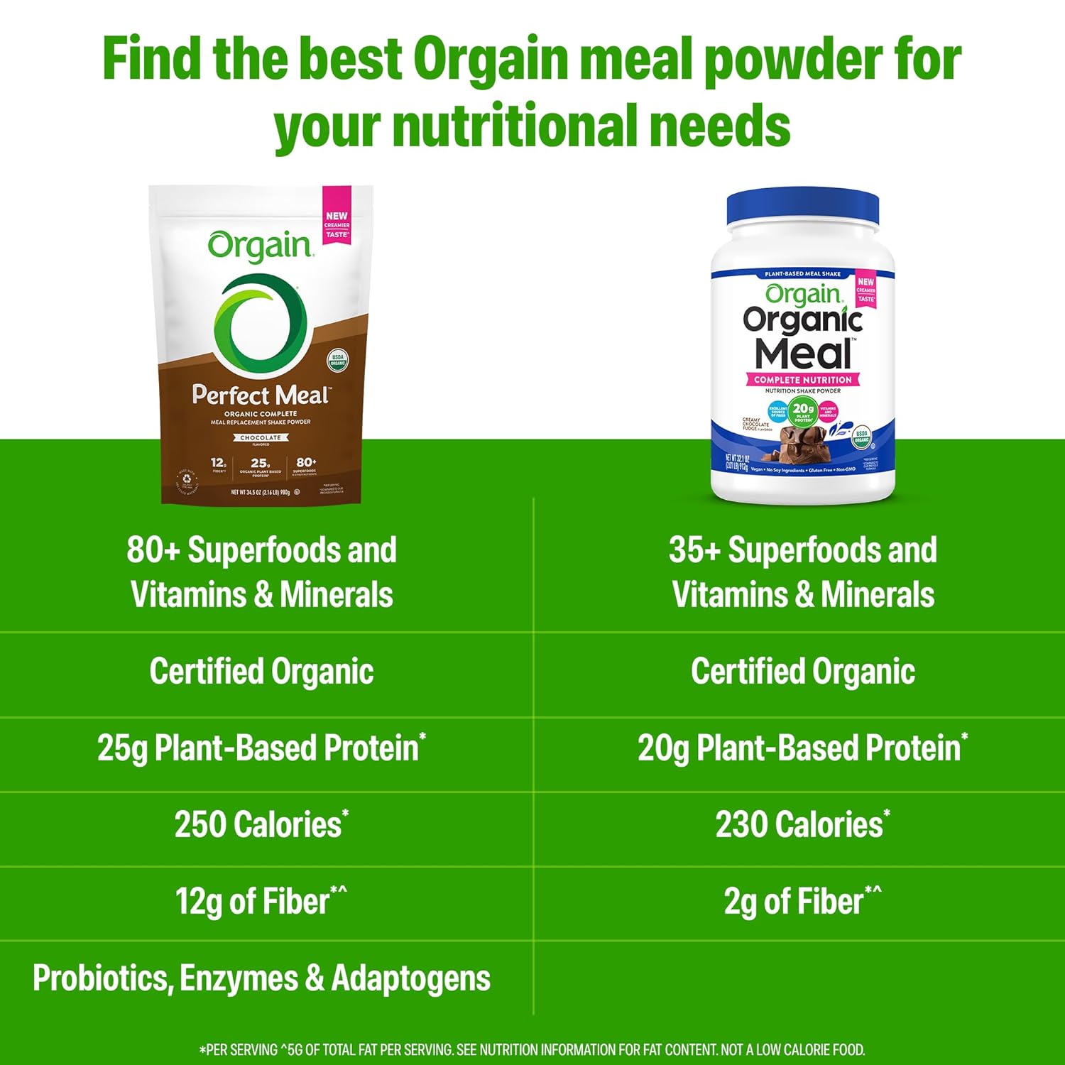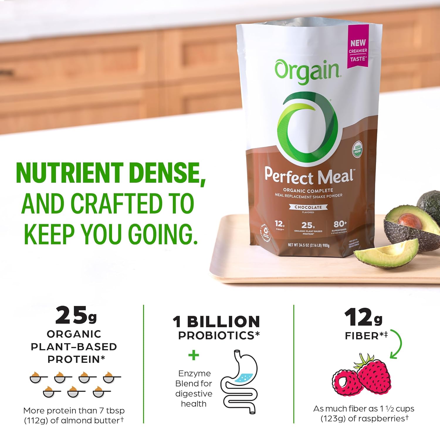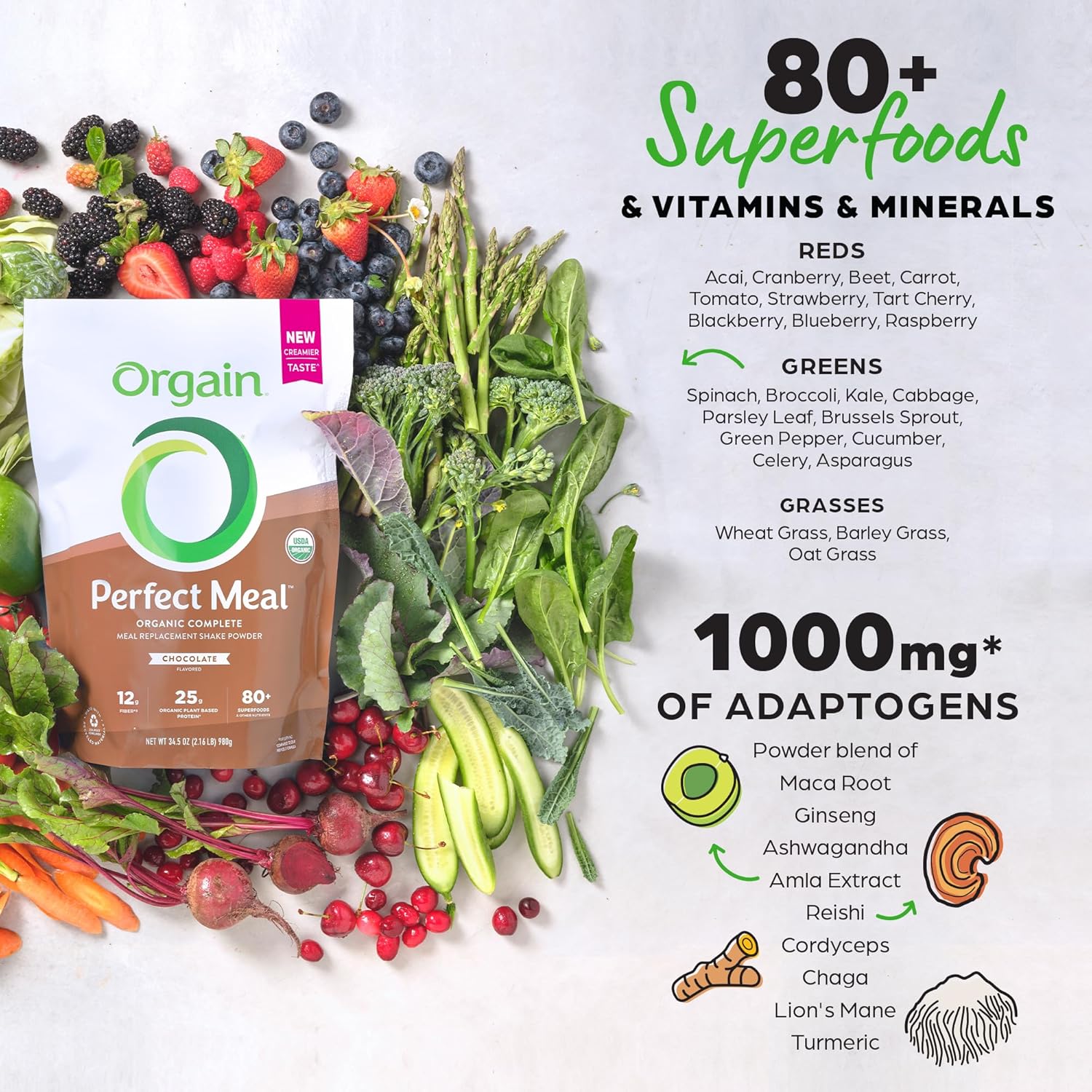 Orgain Perfect Meal, Organic, Vegan Meal Replacement Protein Powder, Chocolate – 25g Plant Based Protein, 80+ Superfoods, 1B Probiotics & 10g Fiber, Adaptogens & Ashwagandha – 2.16lb