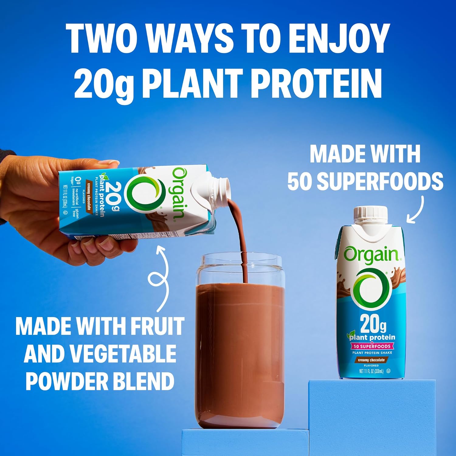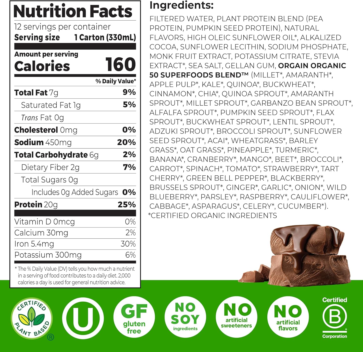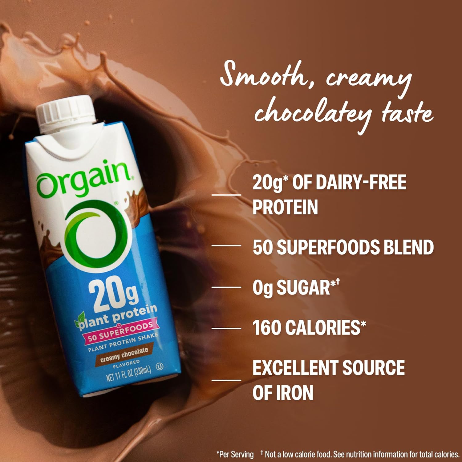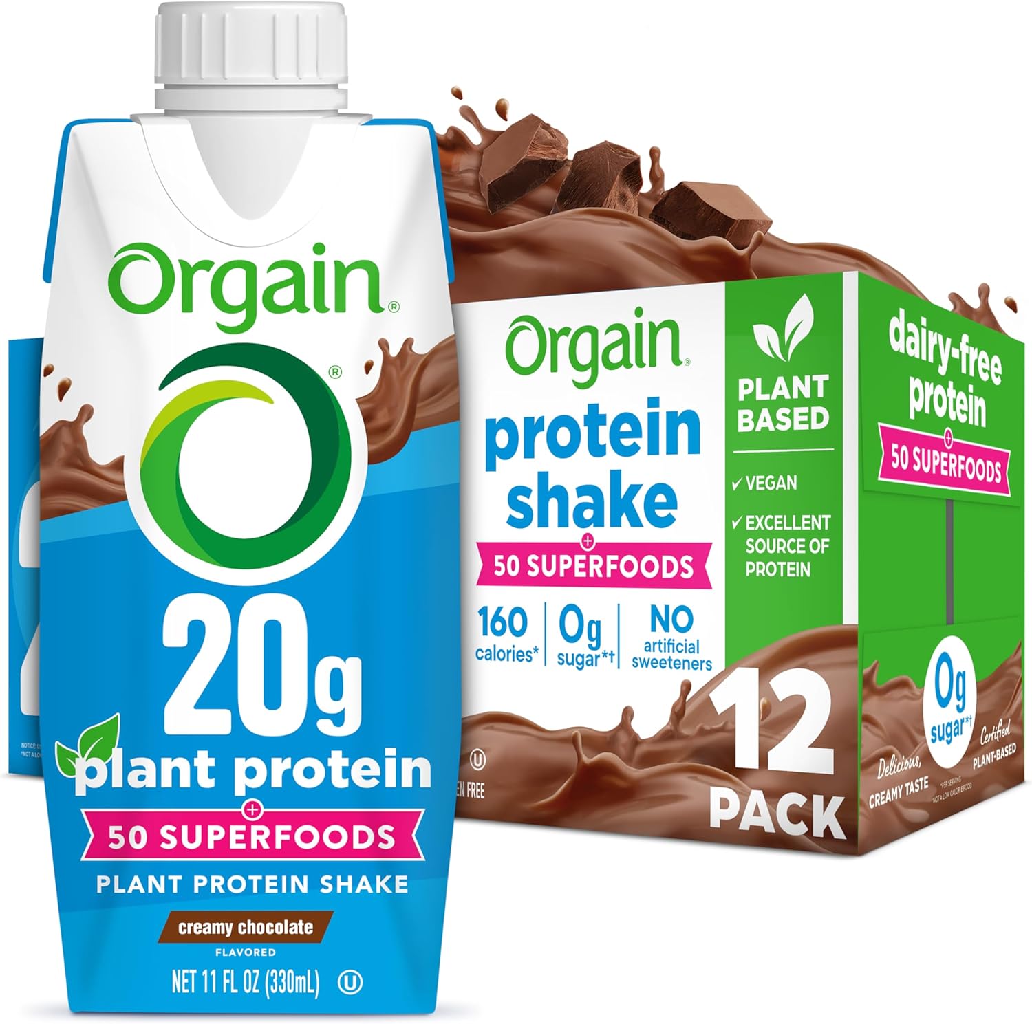 Orgain Vegan Protein Shake, Creamy Chocolate – 20g Plant Protein, Ready to Drink, 50 Superfoods, 0g Sugar, Gluten Free, No Artificial Sweeteners, No Soy or Dairy Ingredients, 11 Fl Oz (Pack of 12)