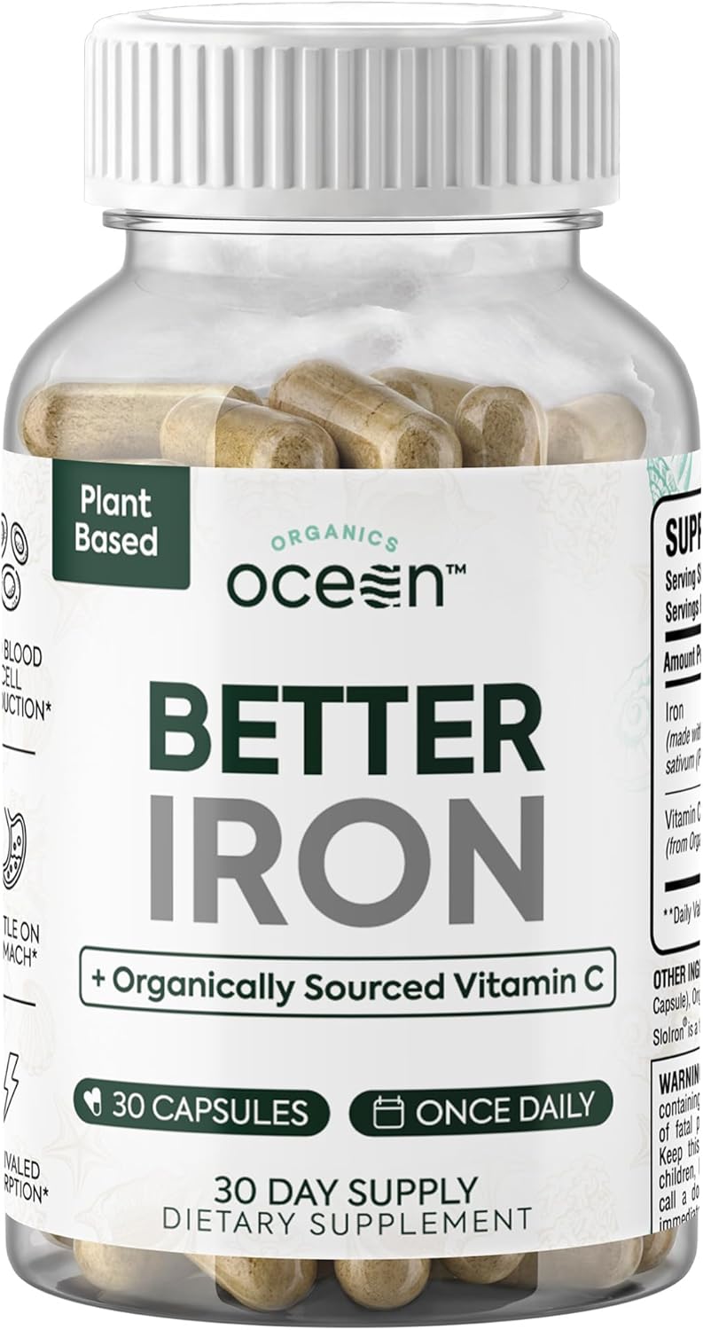 Organics Ocean Better Iron Supplement with Vitamin C – Plant-Based Fermented Pea Formula – Supports Iron Absorption, Energy & Vitality – Gentle on the Stomach, Vegan, Non-GMO – 1 Pack