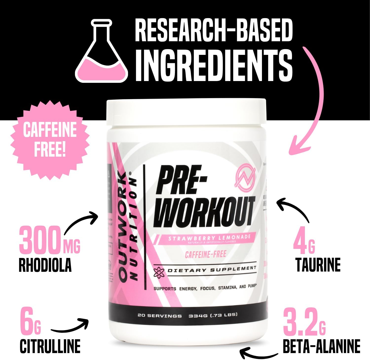 Outwork Nutrition Non-Stim Pre Workout Powder – Citrulline Malate, Beta-Alanine, Rhodiola Extract for Performance, Focus & Energy Boost – Preworkout for Men, Women (Caffeine Free, Strawberry Lemonade)