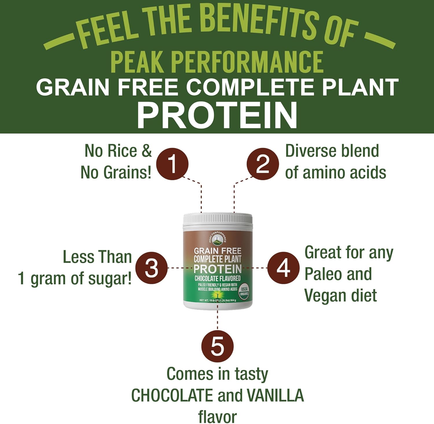 Peak Performance Organic Paleo Grain Free Plant Based Raw Vegan Protein Powder. Amazing Amino Acid Profile and Less Than 1g of Sugar. with Hemp and Pea Protein Chocolate Flavored