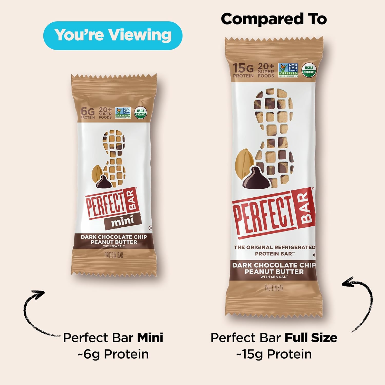 Perfect Bar Mini Protein Bars, Peanut Butter and Dark Chocolate Chip Peanut Butter Variety Pack, Gluten Free, Made with Organic Honey, Cookie Dough Texture, Refrigerated, 18 Count, 0.88 Oz Bar