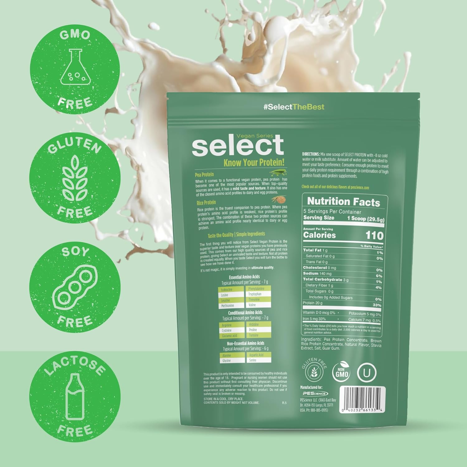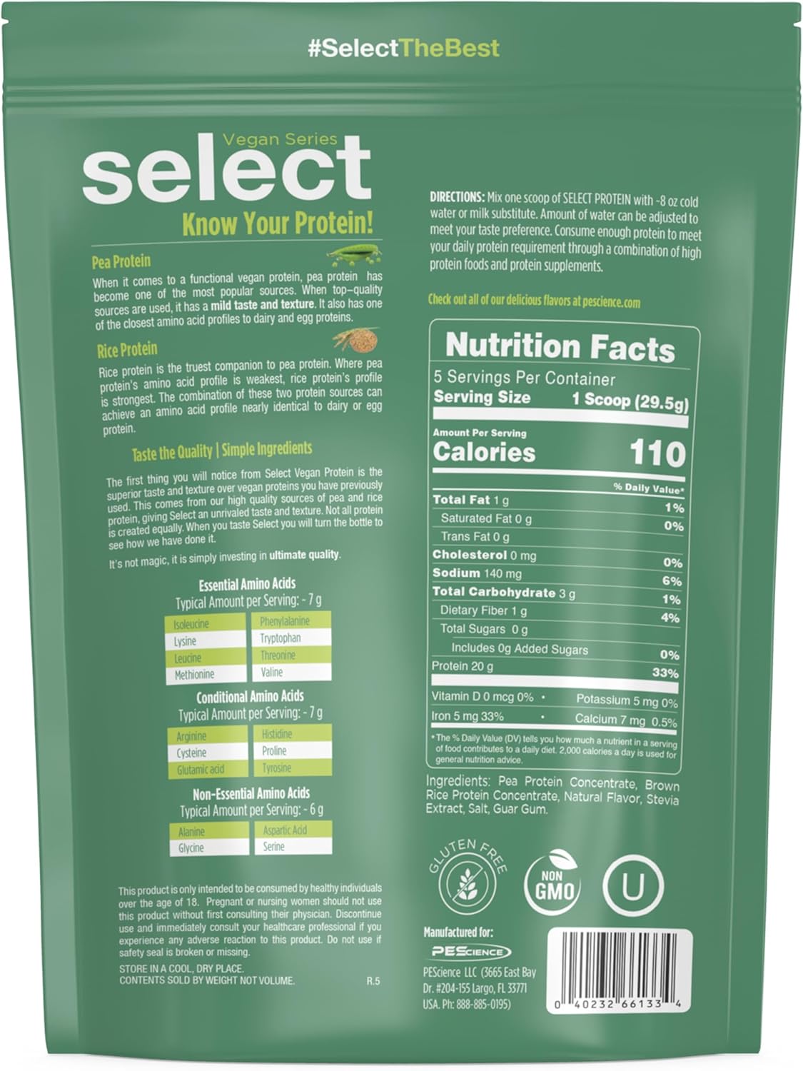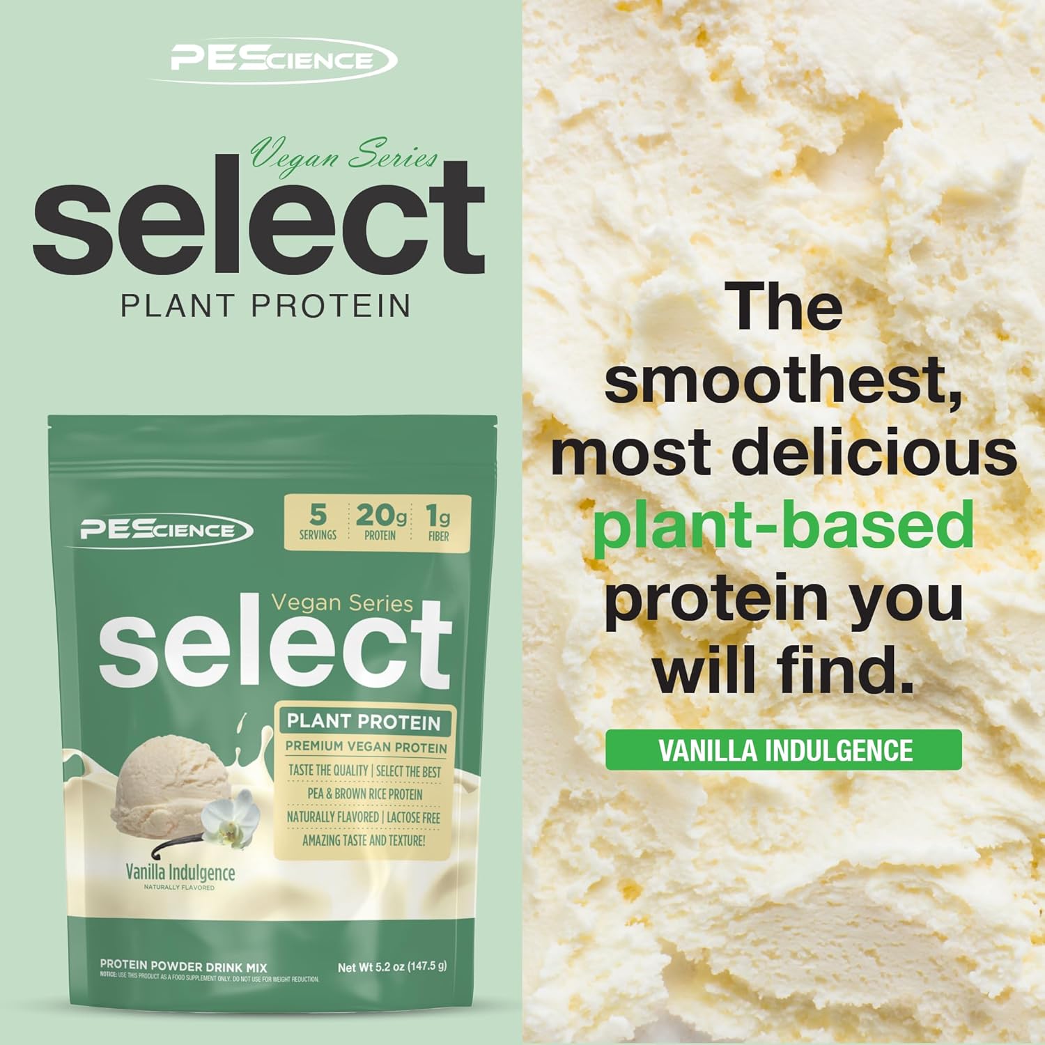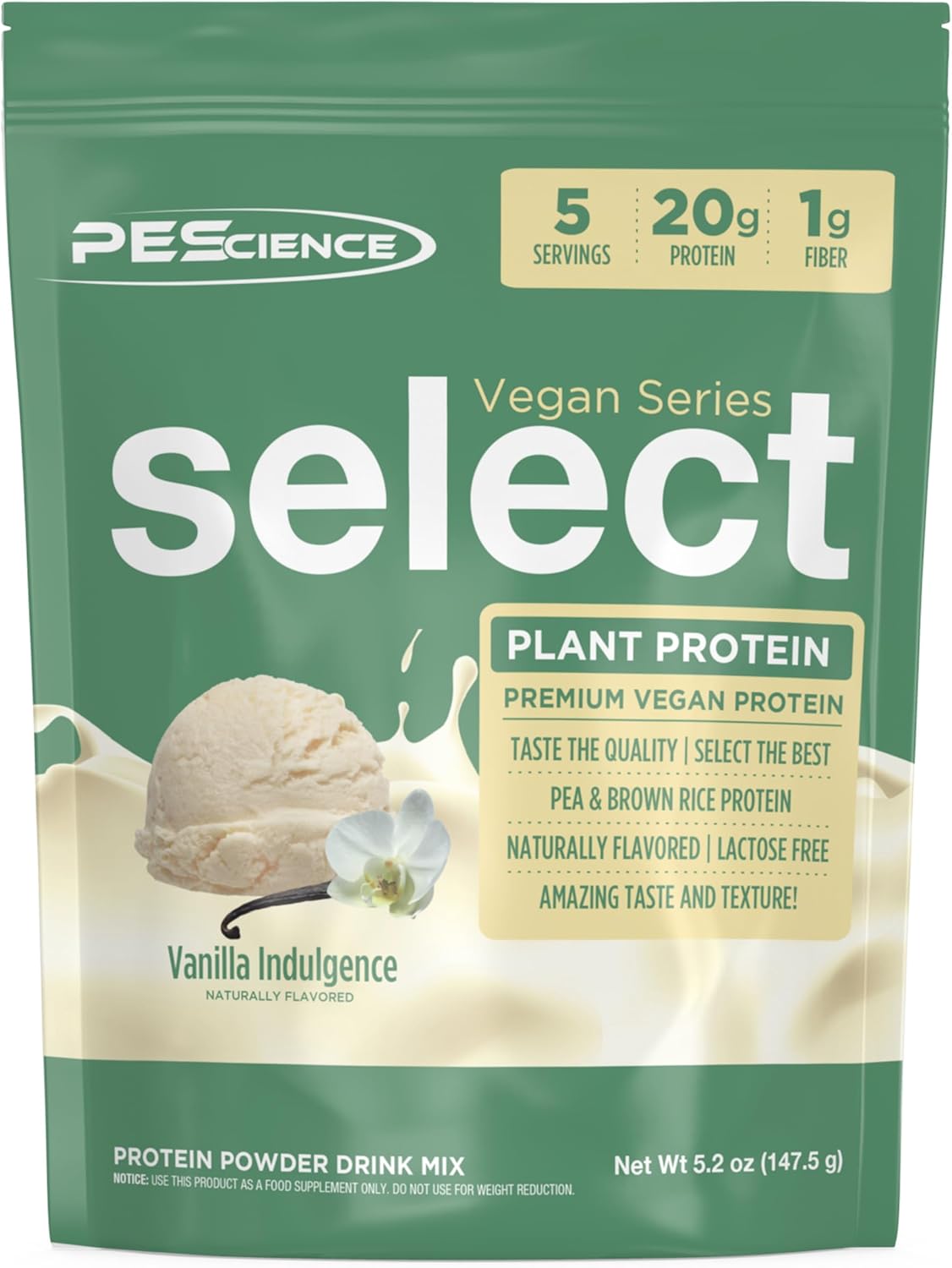 PEScience Select Vegan Protein Powder, Plant Based Protein Powder, Amazing Taste, Smooth Texture, Pea and Brown Rice Blend, Dairy Free, Lactose Free, Gluten Free – Vanilla Indulgence, 5 Servings