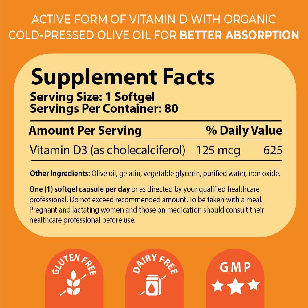 Pharma Nord D-Pearls 5000 iu (125 mcg) High Potency Vitamin D3 – High Absorption Mini Softgels in Organic Olive Oil, Immune, Bone, & Muscle Support, Non-GMO, Gluten-Free, 240 Count