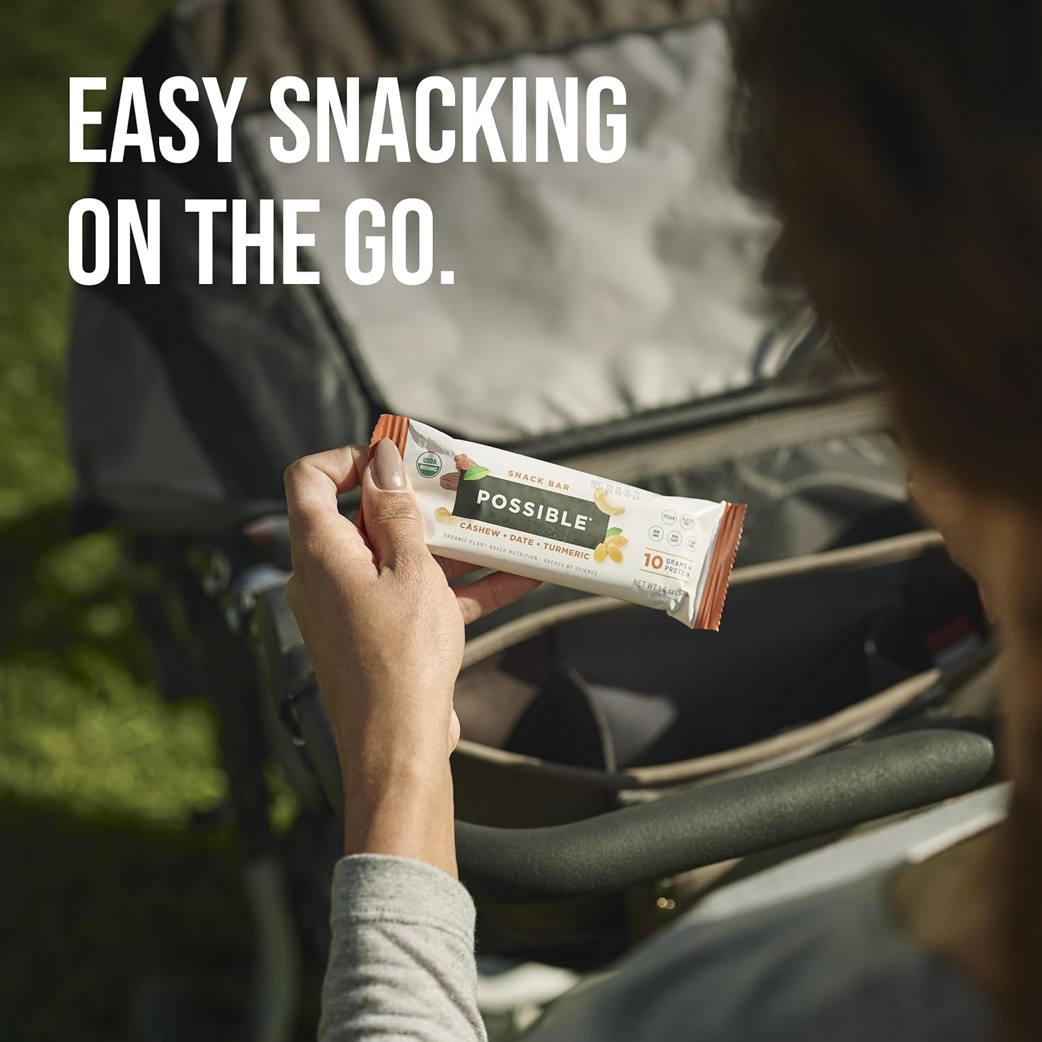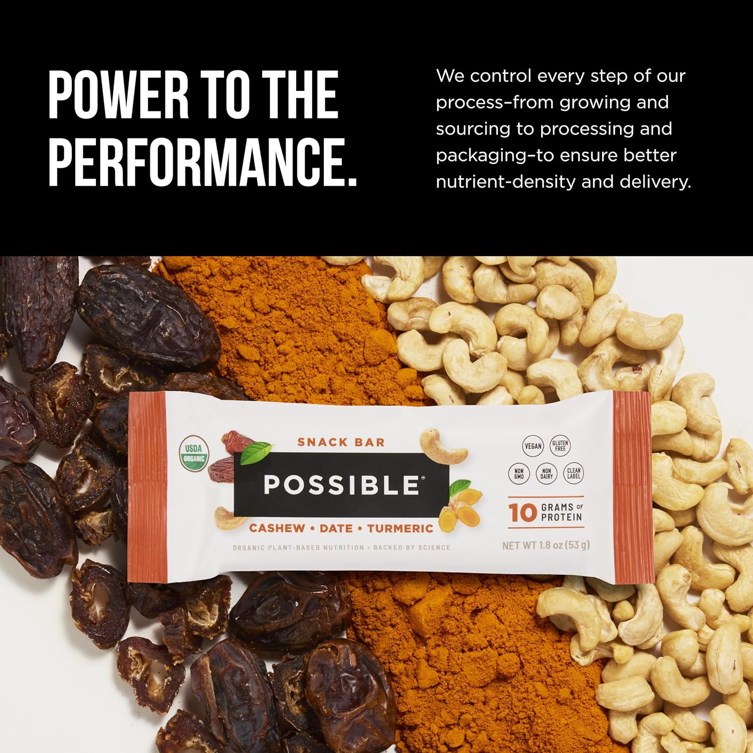 POSSIBLE Snack Bar – Whole Food Snack to Support a Healthy & Active Lifestyle – 10g of Organic Plant-Based Protein – Energy Support with Healthy Fats – Cashew Date Turmeric, 12 Count (Pack of 1)