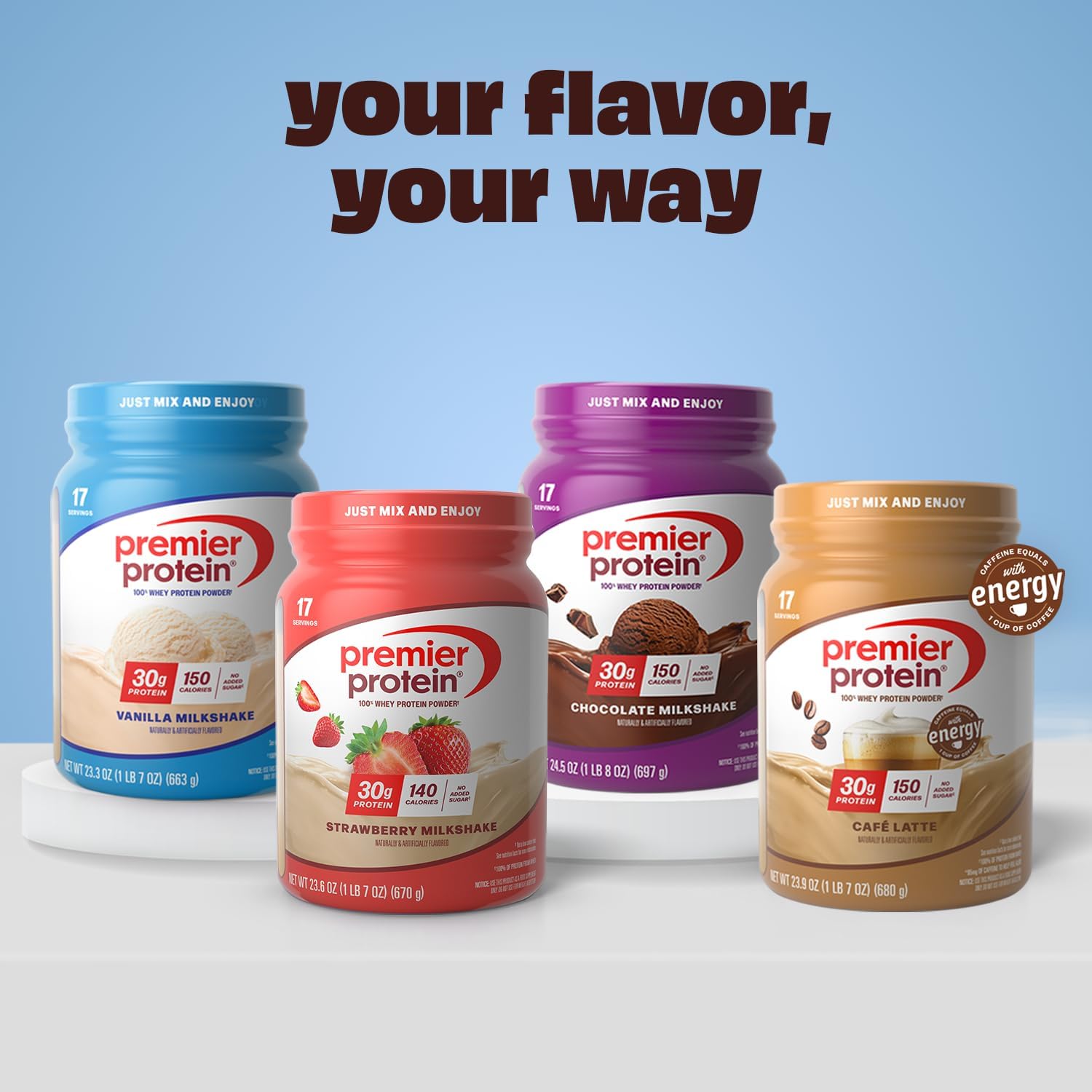 Premier Protein Powder, Vanilla Milkshake, 30g Protein, 1g Sugar, 100% Whey Protein, Keto Friendly, No Soy, Gluten Free, 23.3 oz (17 Servings)