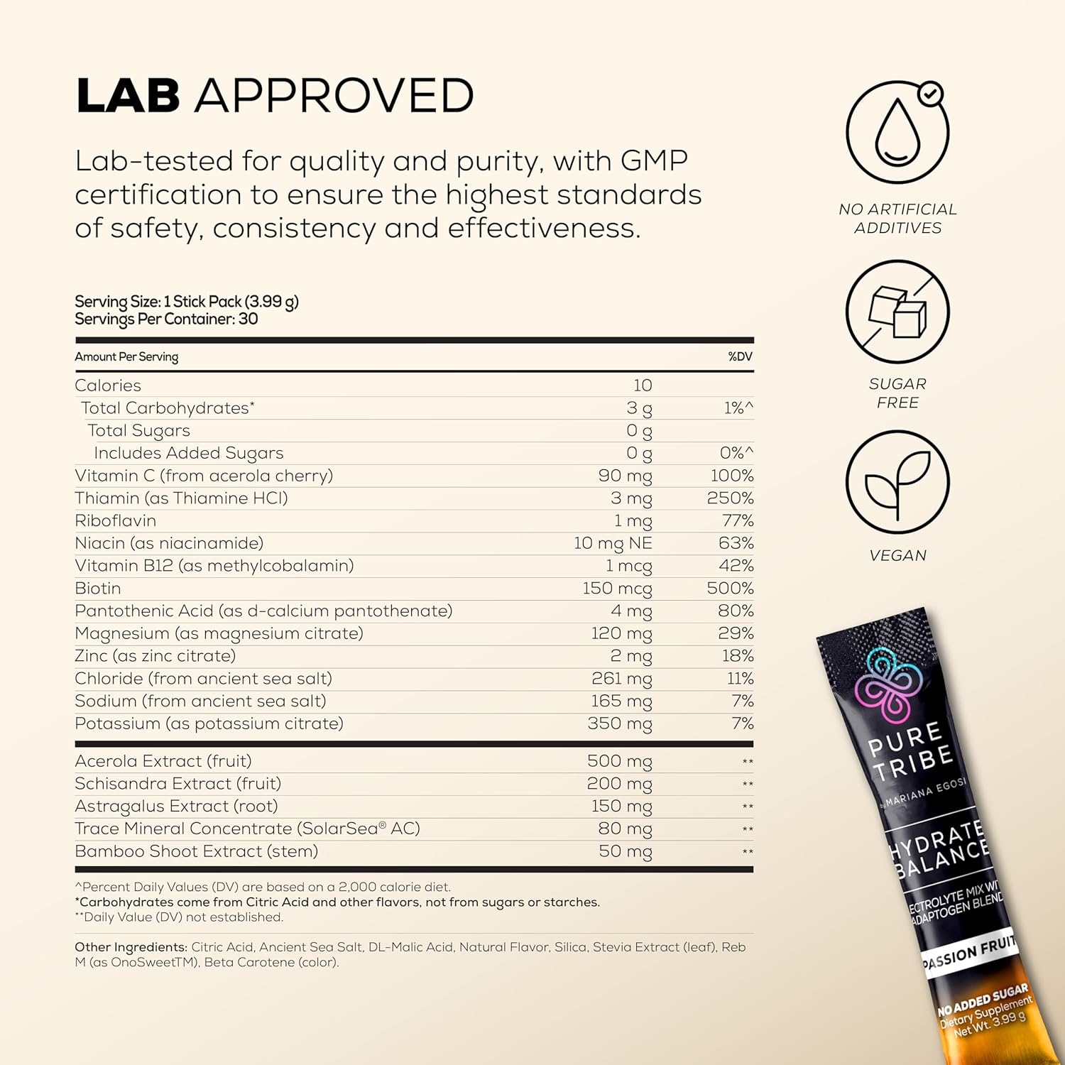 PURE TRIBE Instant Hydration Electrolytes Powder Packets with Magnesium & Salt – Zero Sugar Hydration Packets with 6 B Vitamins & Adaptogens – Passion Fruit Electrolyte Drink Mix – 30 Servings