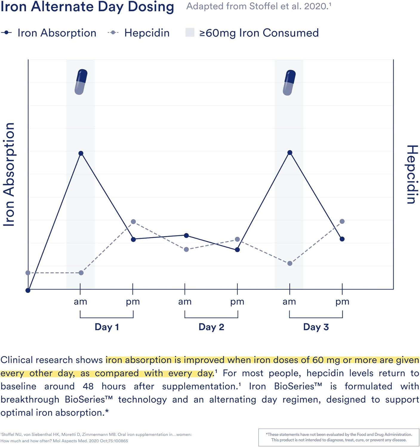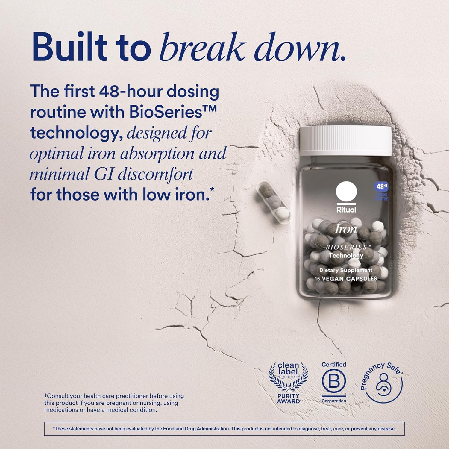 Ritual Iron Supplement to Support Low Iron Levels 60 mg | 48-hour Dosing Routine with BioSeries™ Technology plus Vitamin A and C. Designed for Optimal Absorption and Minimal GI Discomfort* 15 Servings
