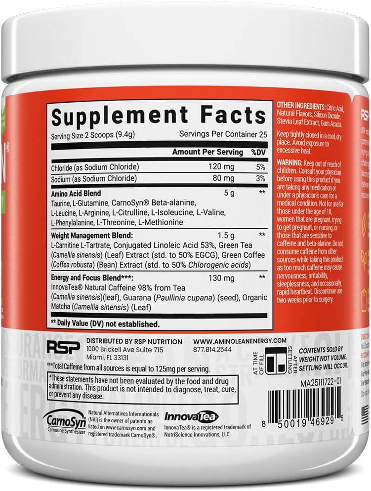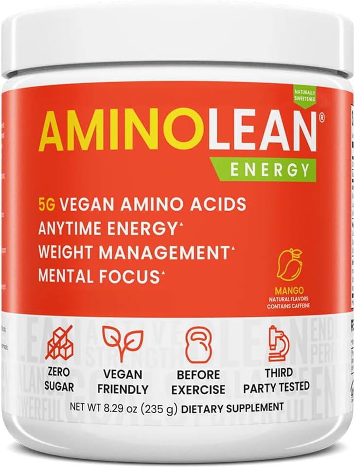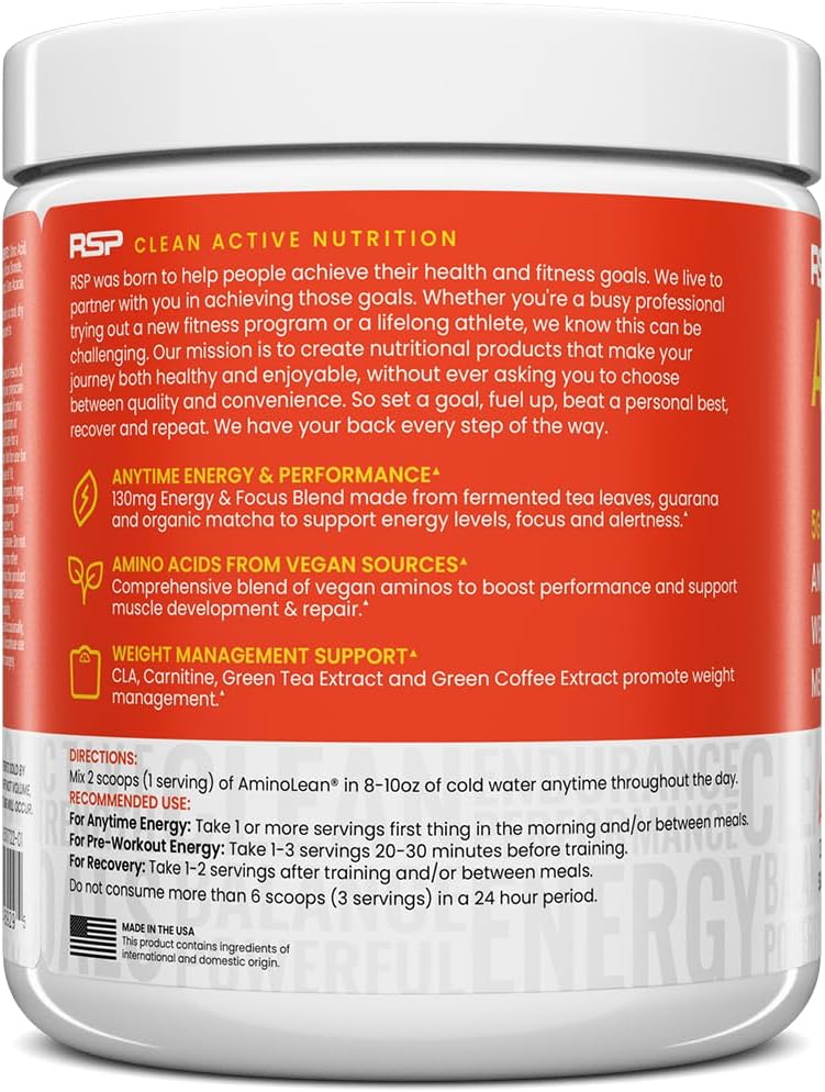RSP NUTRITION AminoLean Natural Pre Workout Powder, Sucralose Free Amino Energy with No Artificial Dyes, Vegan BCAAs and Weight Management, Mango, 25 Serv