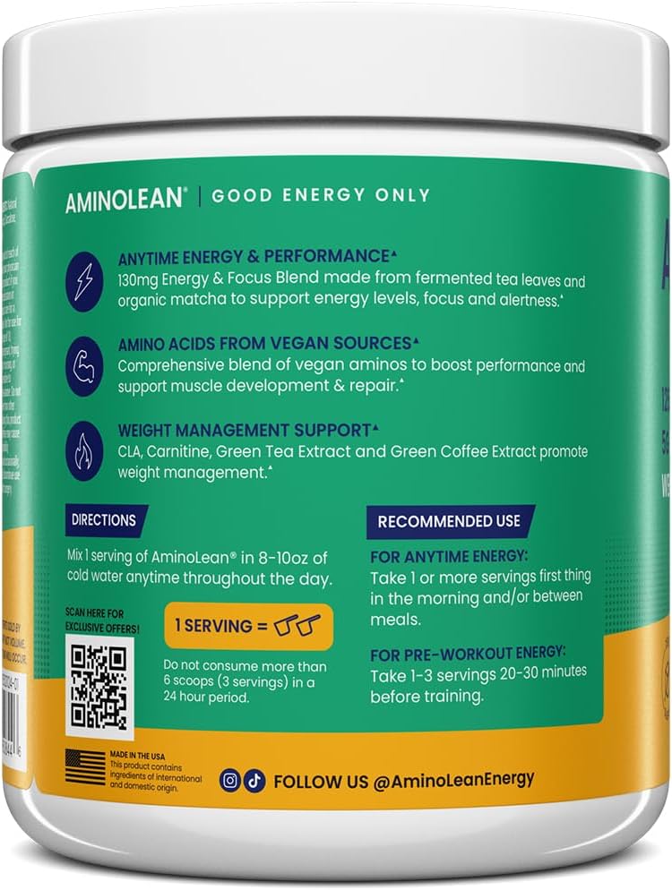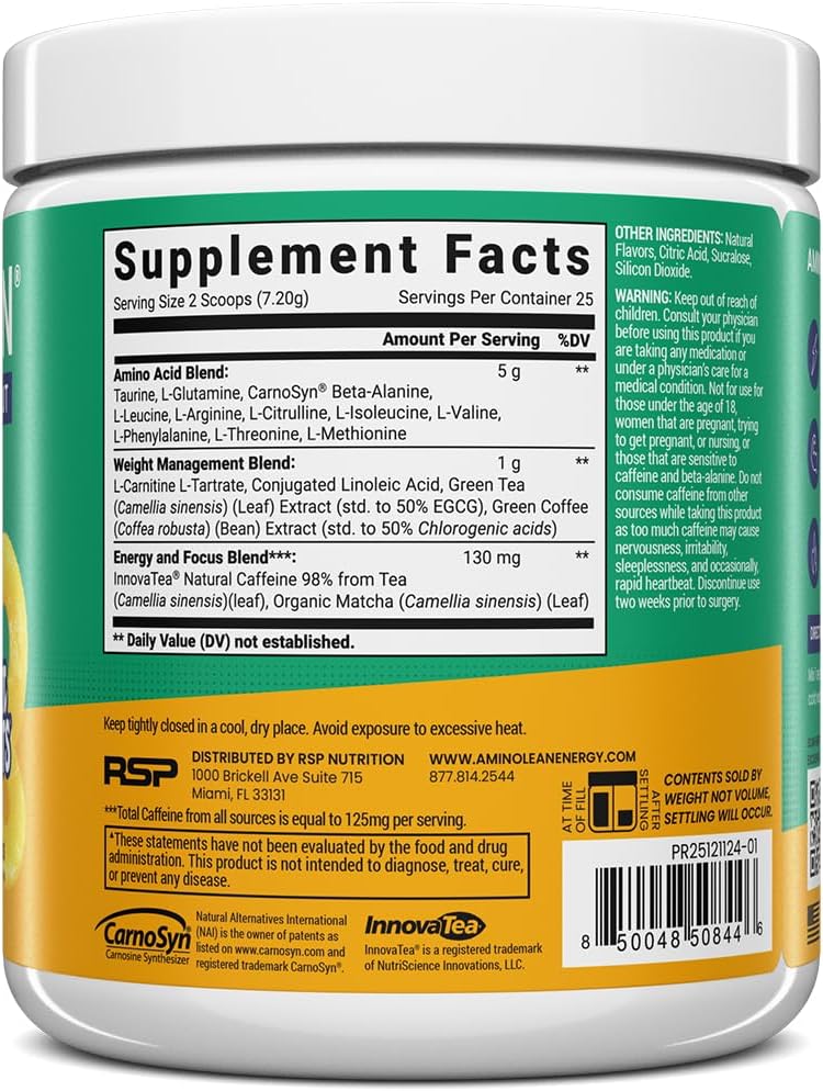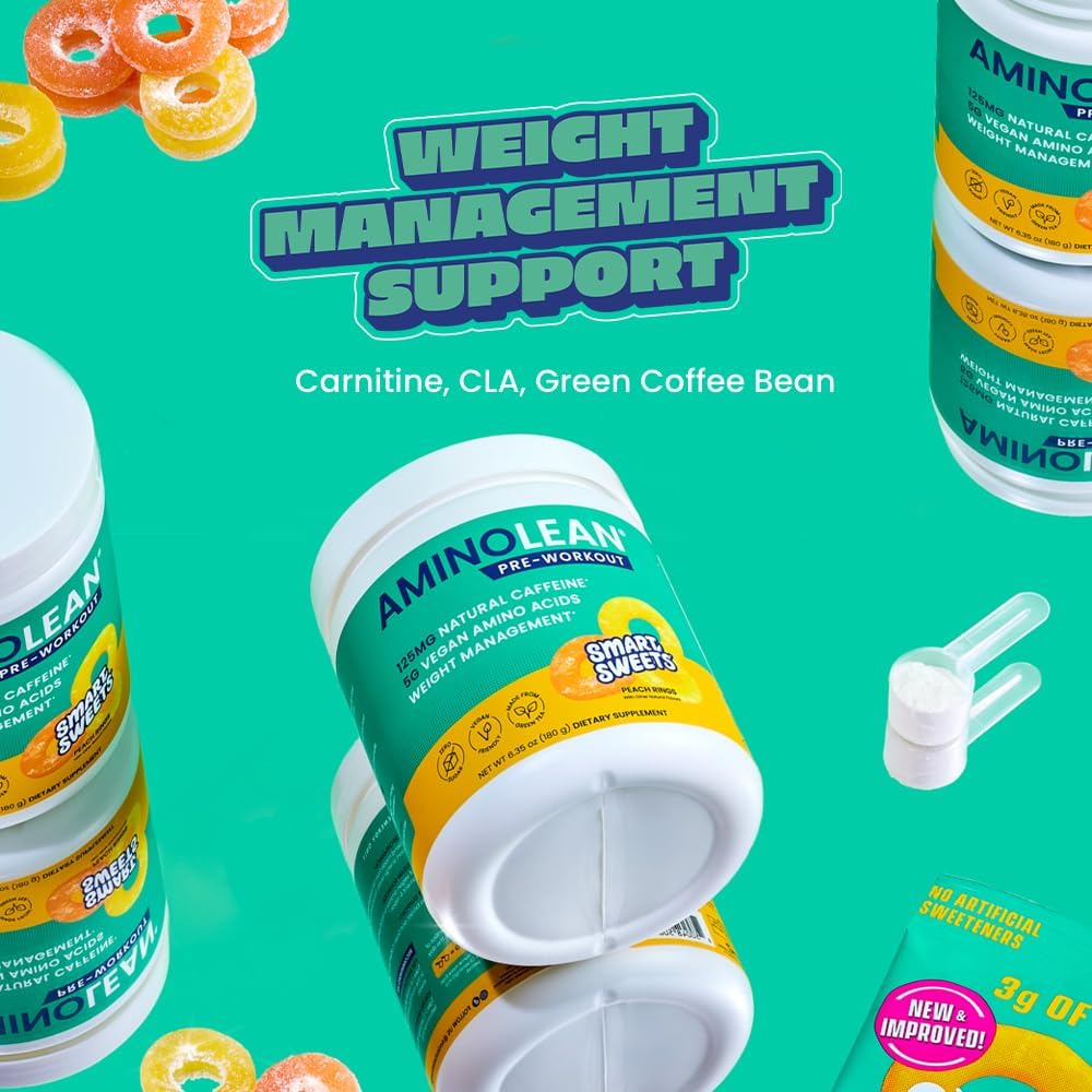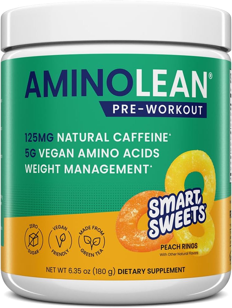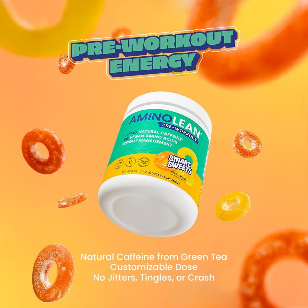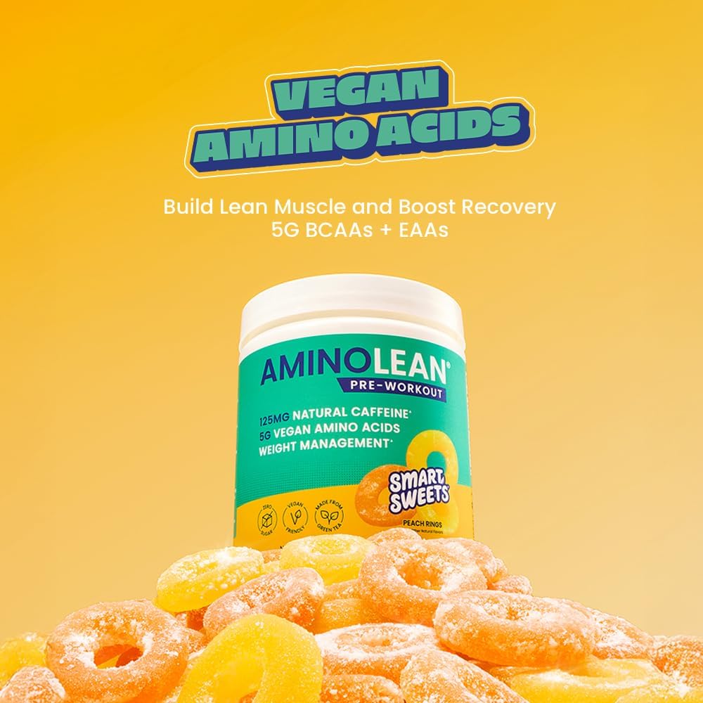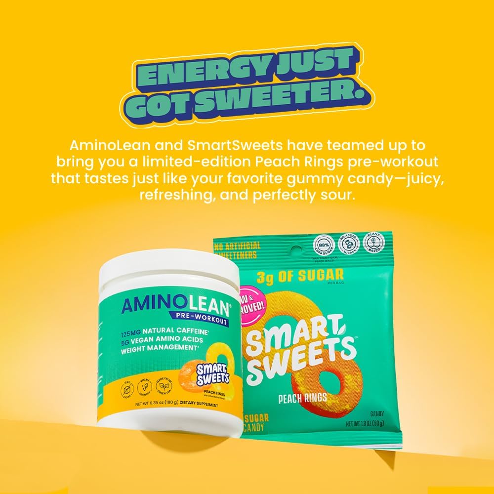 RSP NUTRITION AminoLean x SmartSweets Pre Workout Powder, Amino Energy with Vegan BCAA Amino Acids & Natural Caffeine, Preworkout Boost for Men & Women, Peach Rings