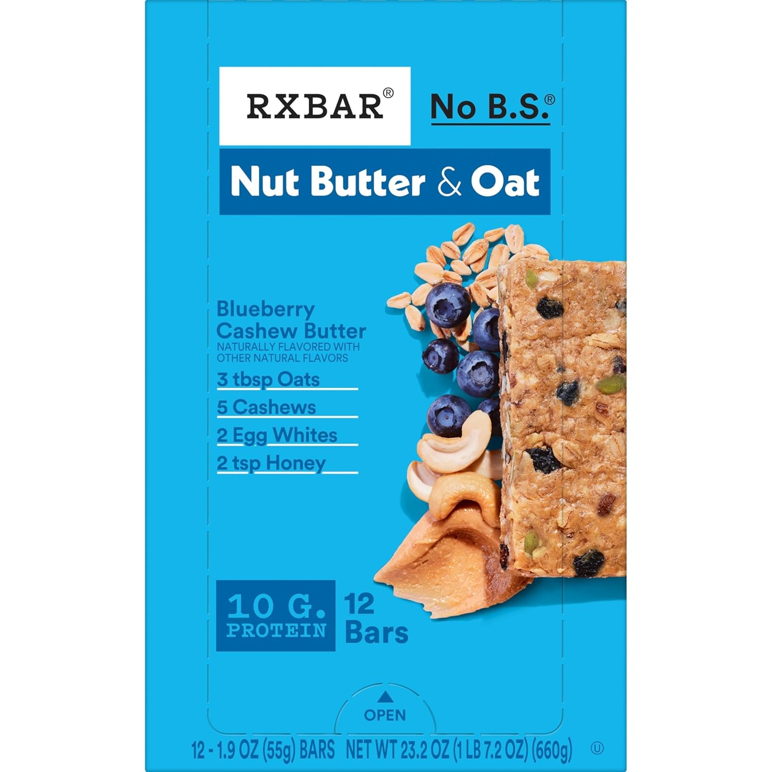 RXBAR Nut Butter and Oat Protein Bars, Protein Snacks, Snack Bars, Blueberry Cashew Butter, 23.2oz Box (12 Count)