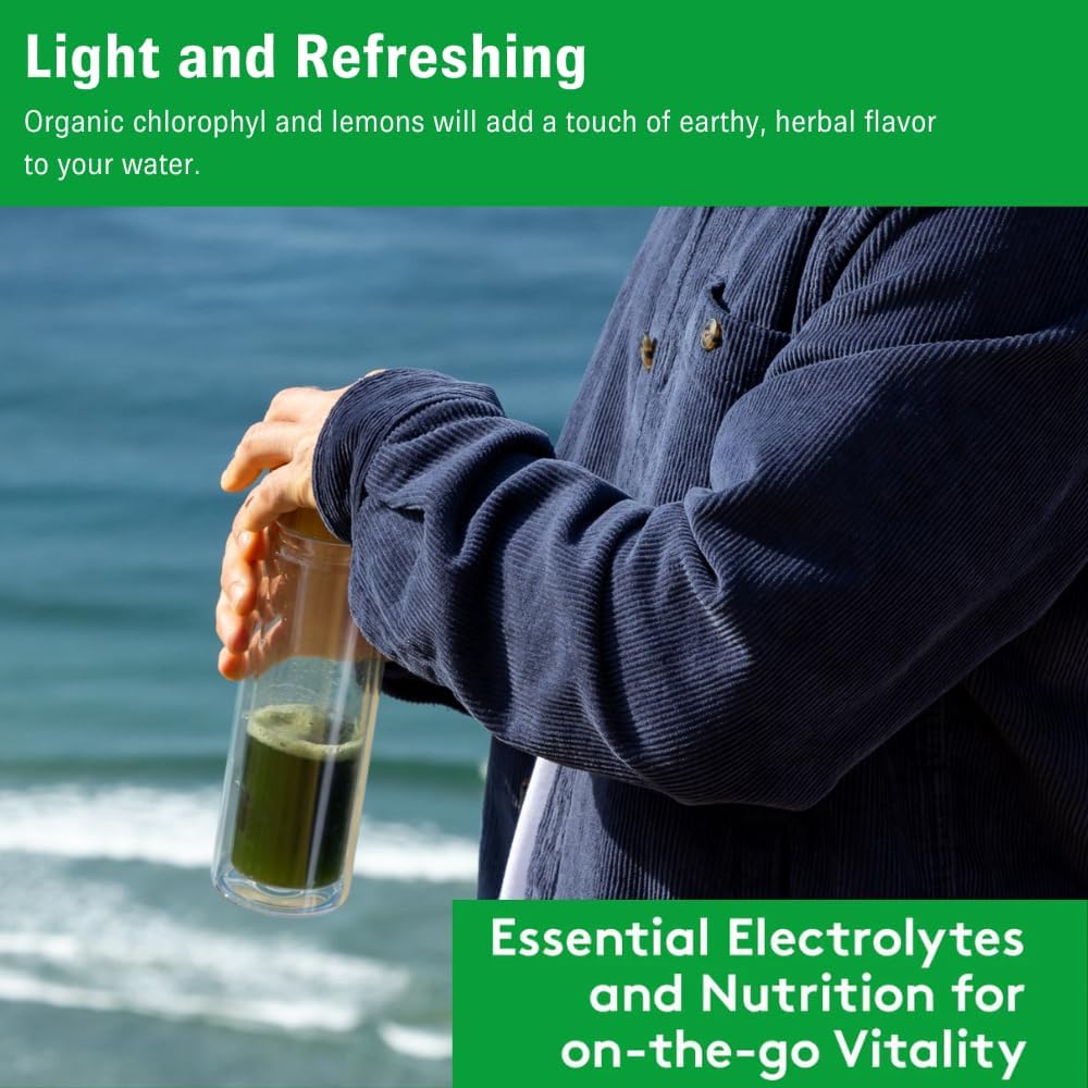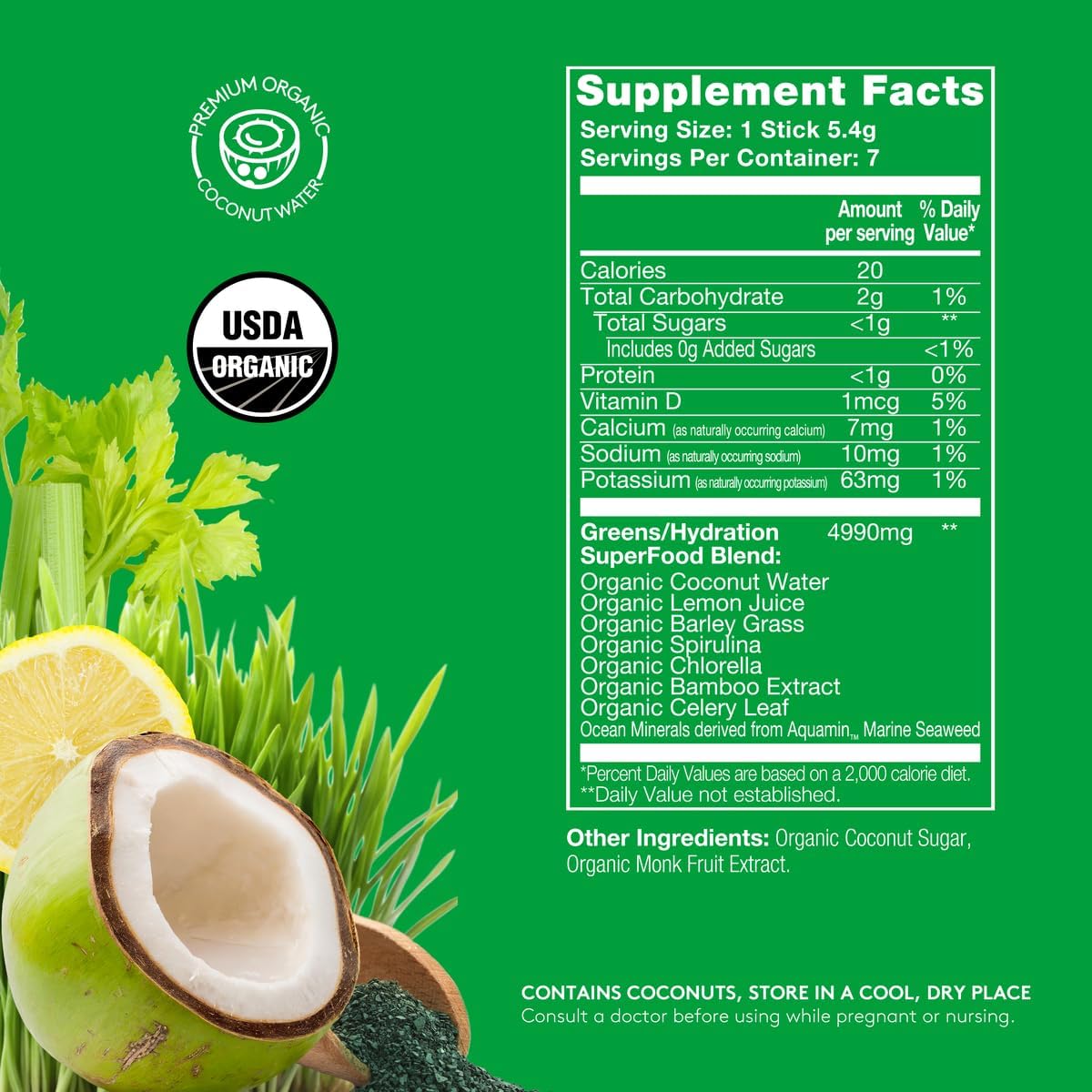 Sol-ti Organic Electrolyte Greens + Hydration Drink Mix, Superfood Hydration Sticks, SuperStix, Non-GMO, Vegan, Chlorophyll Lemon, 14 Sticks