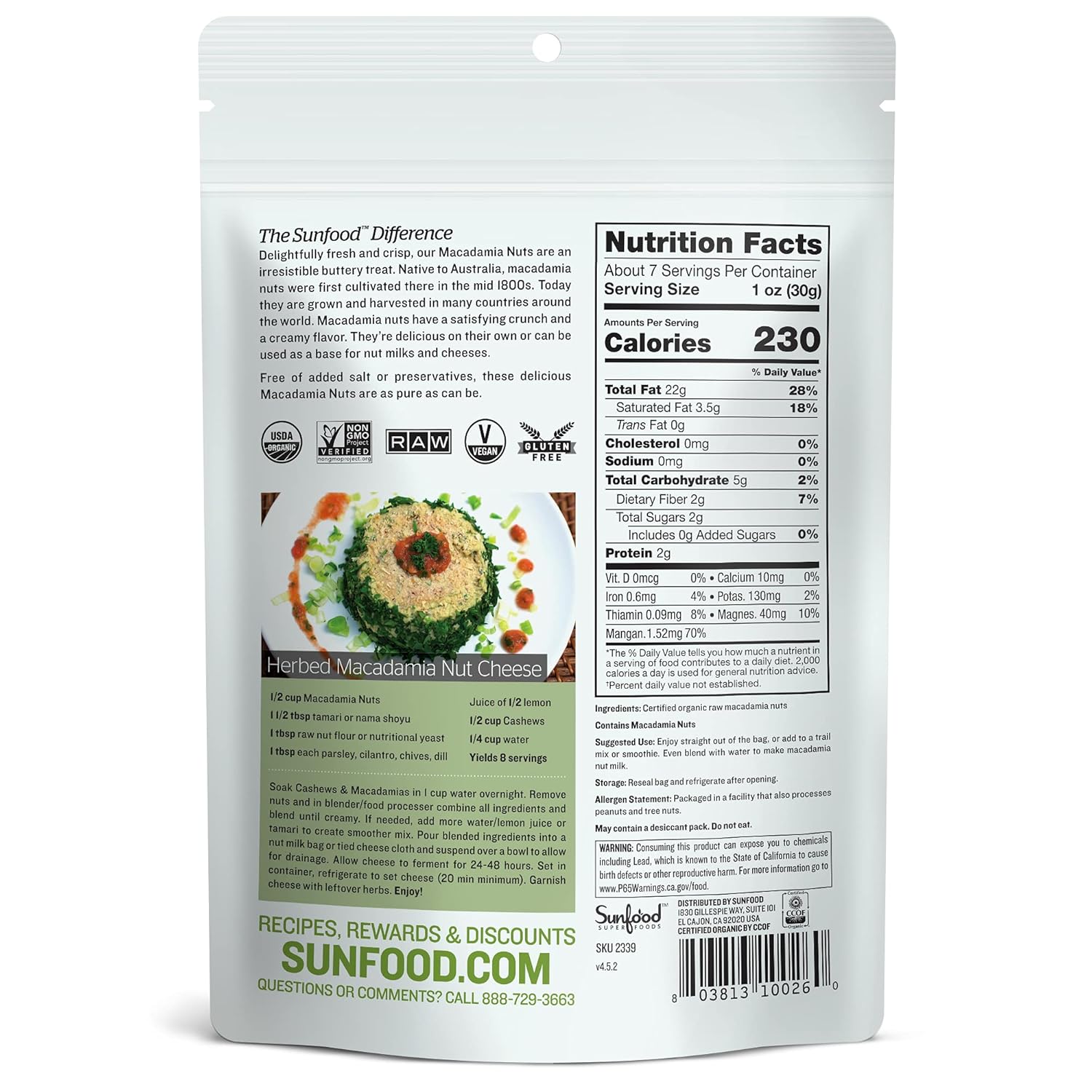 Sunfood Superfoods Organic Macadamia Nuts – Raw Macadamia Nuts Organic, Organic Macadamia Nuts Unsalted, for Macadamia Nut Milk, Baking, Trail Mix, Cheese, USDA Organic, Raw, Vegan, Non GMO – 8 oz Bag