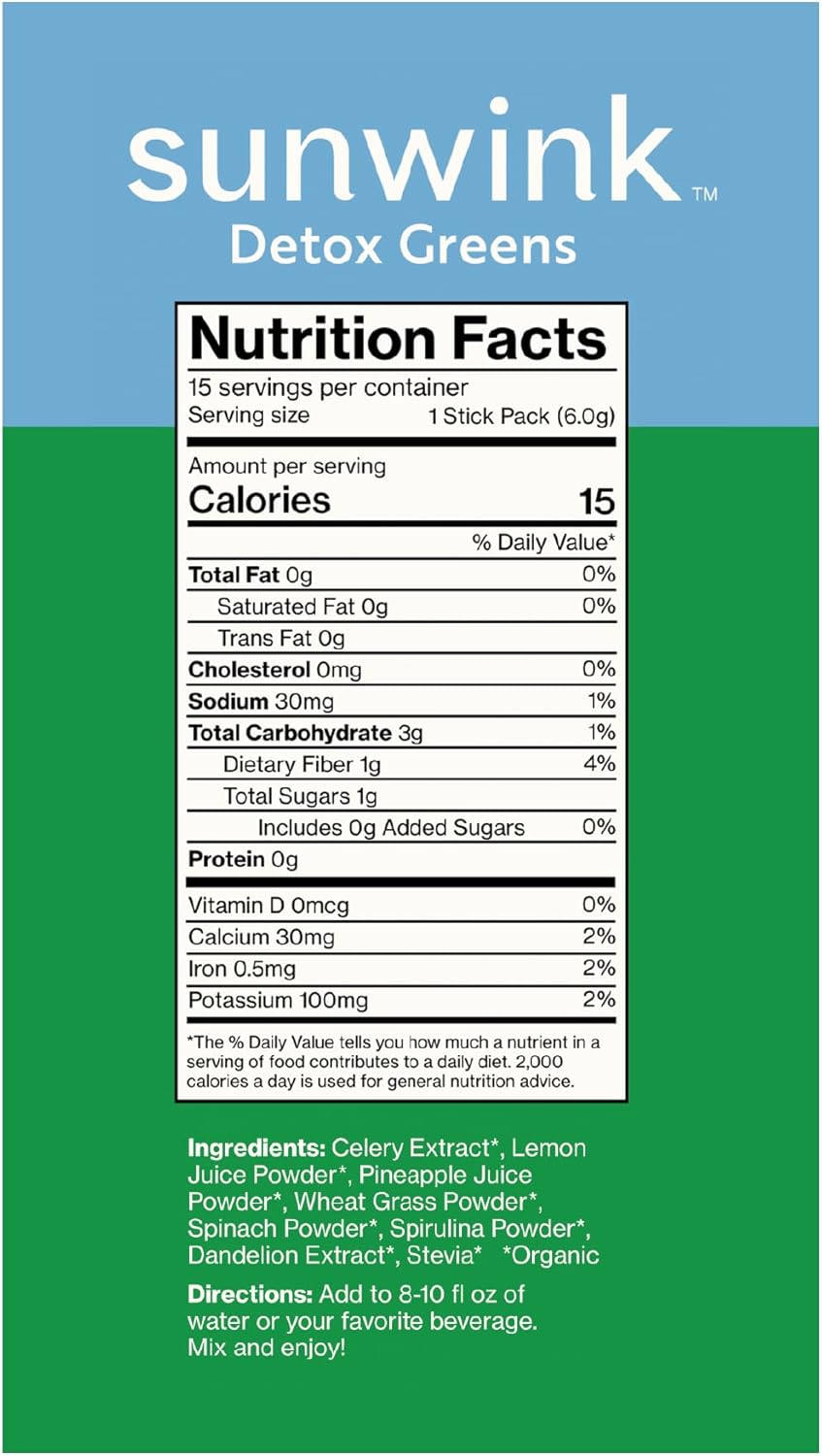 Sunwink – Detox Greens Powder for Digestive Support – Plant-Based Superfoods & Adaptogens (6g Each, Pack of 15)