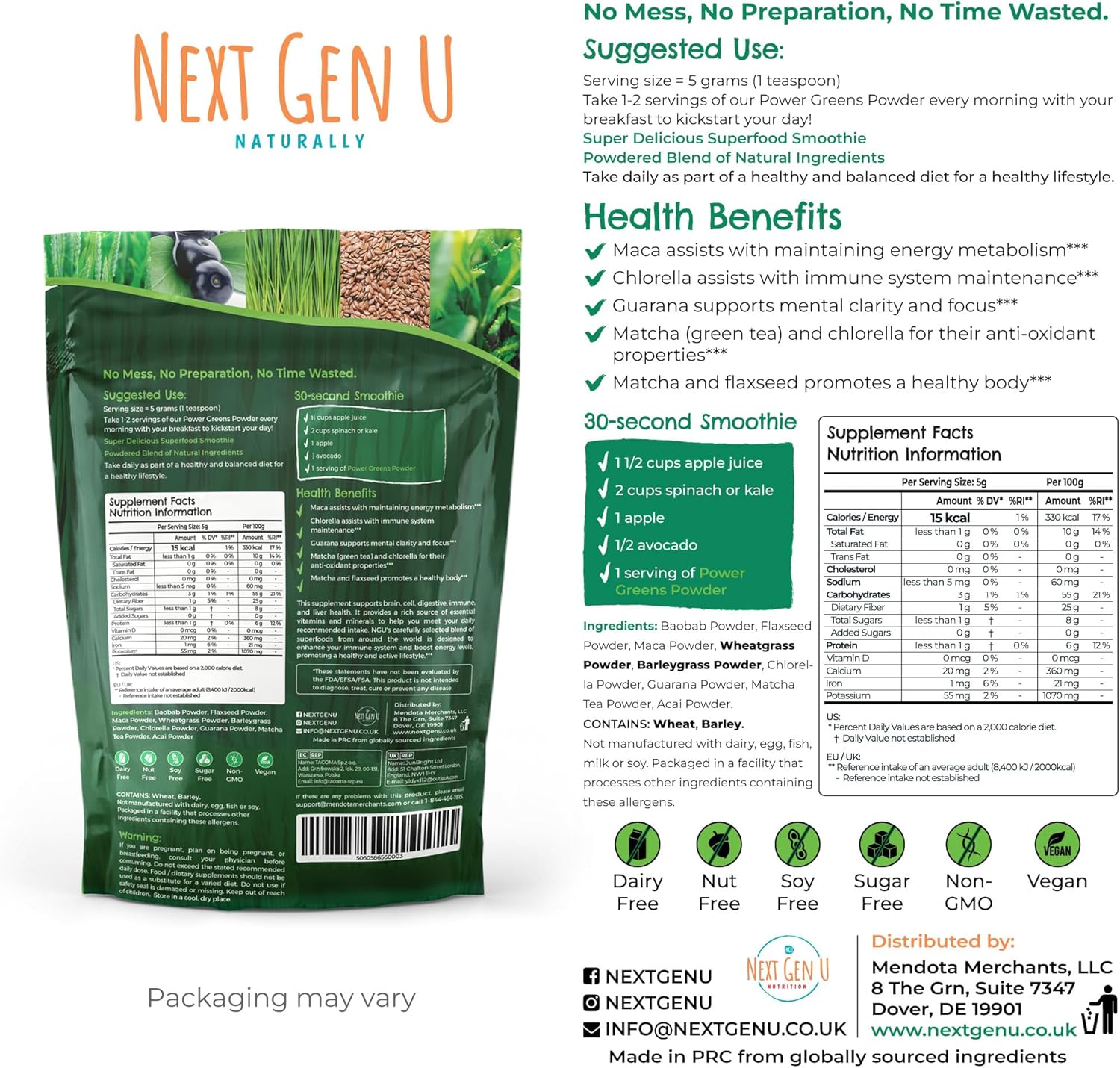 Super Greens Powder – 150g – Immune Support – Food Supplement – Superfood Greens – Smoothie Mix for Shakes – Detox & Healthy Boost for Juice Beverages or Any Drink – by NextGenU